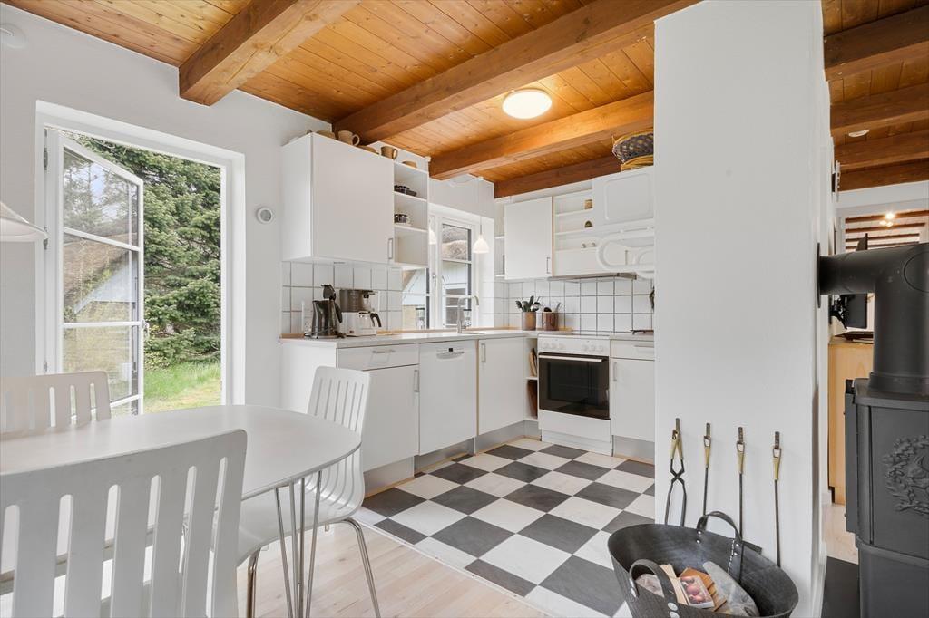Nyd det smukke lysindfald der præger hele huset, om I så er i køkkenet, stuen eller badeværelset er der et fantastisk lys. Fyr op for kogepladerne og start madlavningen i det skønne og veludstyrede køkken som ligger i åben forbindelse med spiseafdeling og opholdsstue, her kan I være sammen selvom I laver forskellige ting, måske nogle spiller kort omkring spisebordet imens andre laver et lækkert aftensmåltid. Tænd op for brændeovnen og smid jer på en af de behagelige sofaer og nyd den ægte varme og hyggelige knitrende lyd som brændeovnen afgiver. Trænger I til at få varmen efter en kølig dukkert i det smukke Vesterhav så tænd op for den udendørs sauna med panorama ud over den store naturgrund og nyd den dejlige varme der langsomt indtager jeres kroppe.