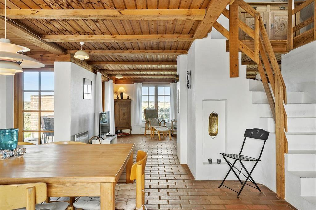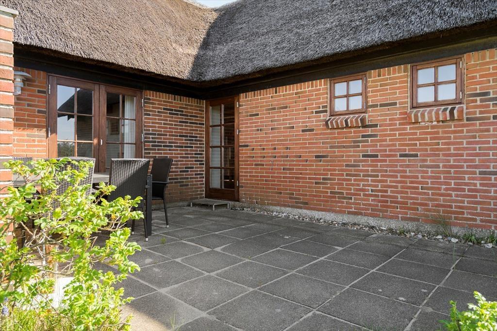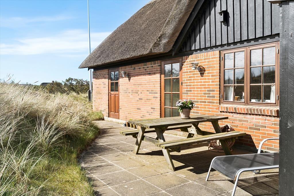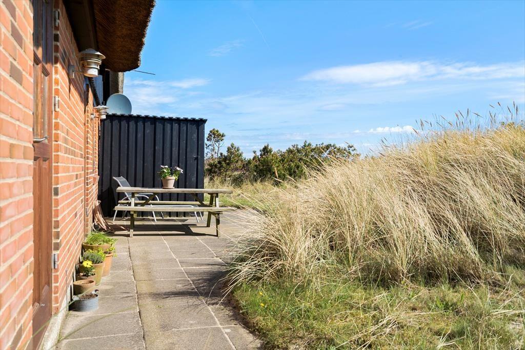 Nyd den fantastiske panoramaudsigt til klitterne der er fra den store naturgrund, her kan I nyde de mange solskinstimer udendørs. Tag morgenkaffen med udenfor og nyd den på den syd-østvendte terrasse med gode læ forhold, her kan I beundre den smukke natur imens solen langsomt stiger op på himlen og skaber et væld af orangerøde nuancer, og nyd hvordan fuglene nænsomt synger dagen ind. Den store terrasse kalder på lune sommeraftner med et glas vin i hånden imens I beundrer den smukke solnedgang bag klitterne.
