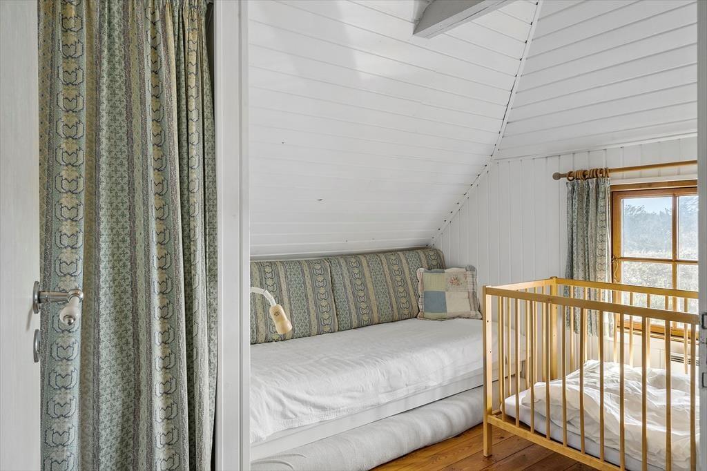 Rustikke materialer og synlige bjælker giver dette sommerhus en fantastisk charme, her kan I nyde samværet med hinanden og glemme hverdagens trummerum. Her kan I nyde hinanden selskab på trods af at I laver forskellige ting, for med kombineret opholdsstue, køkkenhjørne og spiseafdeling kan I holde samtalen kørende selvom nogle laver mad, andre spiller kort omkring det charmerende spisebord og nogle sidder foran den smukke special indbyggede brændeovn og nyder den knitrende lyd og dejlige varme der breder sig i rummet. Trænger I en dag til total afslapning kan I fyre op for den lækre spa og nyde de mange bobler og dejlige varme der omfavner jer, til sidst kan I sætte jer ind i saunaen og nyde tilværelsen.