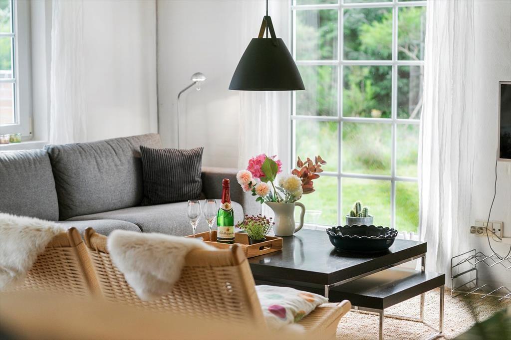 Charmerende og yderst hyggeligt sommerhus, her træder I ind i en oase af hygge, og så er der kælet for detaljen. Lav et lækkert måltid i det dejlige køkken, uden at komme udenfor fællesskabet, for med køkkenet der ligger i åben forbindelse med stue og spiseafdeling, har I rig mulighed for at være sammen på trods af at I laver forskellige ting. Tænd op for brændeovnen og nyd dens hyggelige knitrende lyd og dejlige varme der spreder sig i rummet, og giver en dejlig rolig atmosfære. Nyd en rolig stund i den dejlige spa og lad roen sænke sig over jer, og afslut dagen med en tur i saunaen.