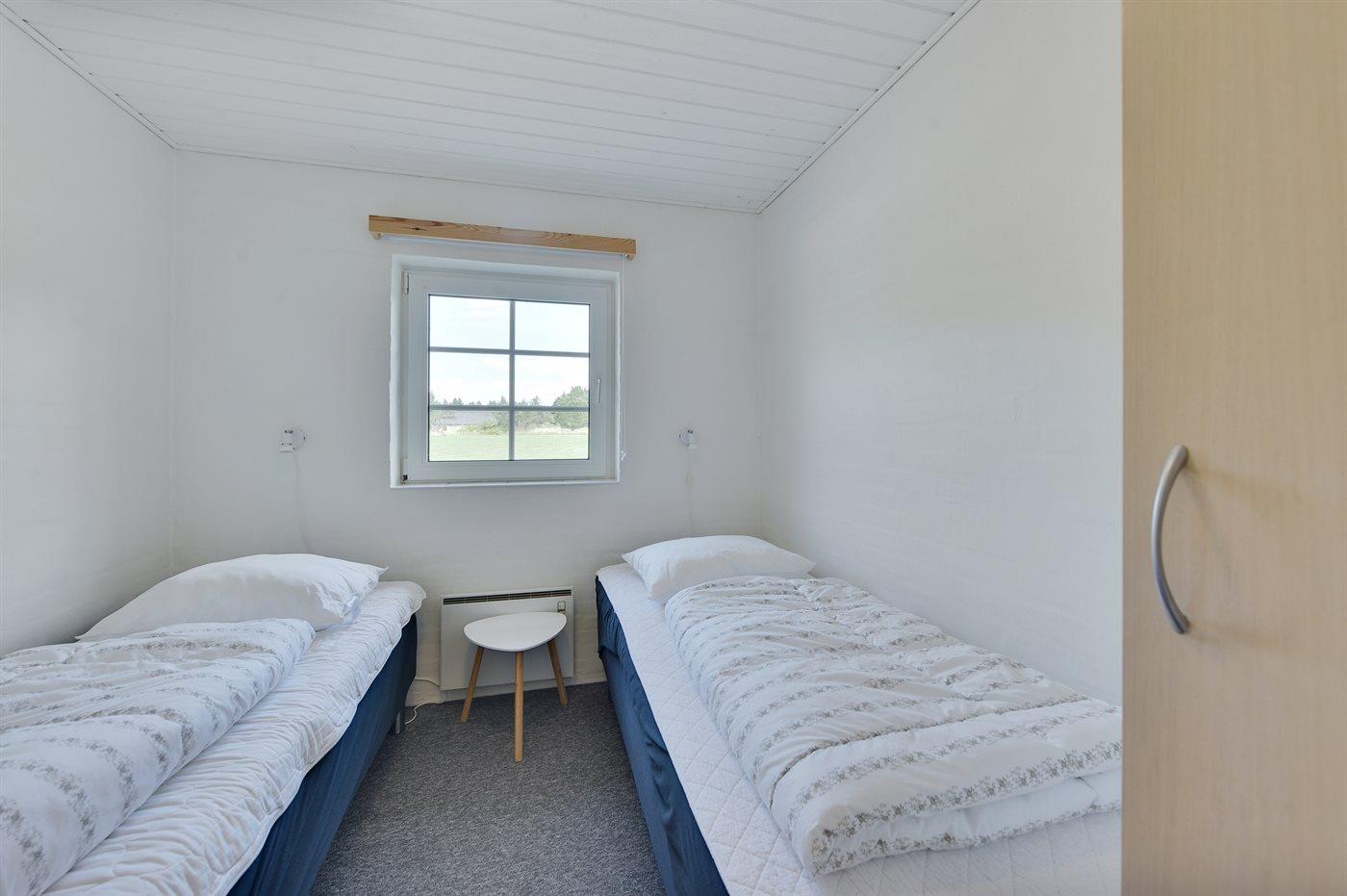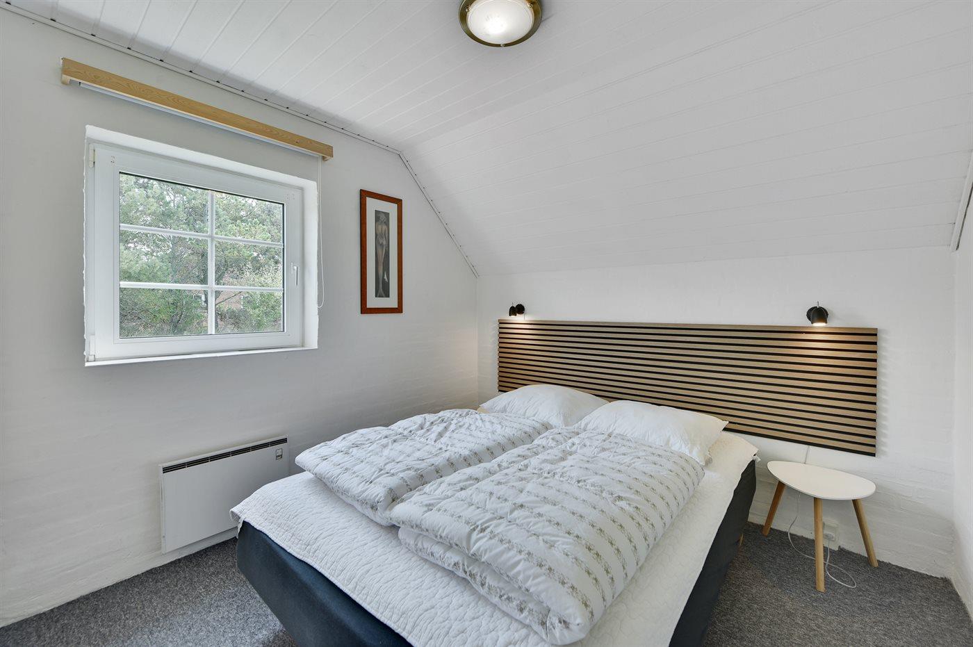 Der er i alt 6 soveværelser. Sovepladserne fordeler sig på: 8 sovepladser i dobbeltsenge. 4 sovepladser i enkeltsenge. Derudover er der 1 stk. barneseng.