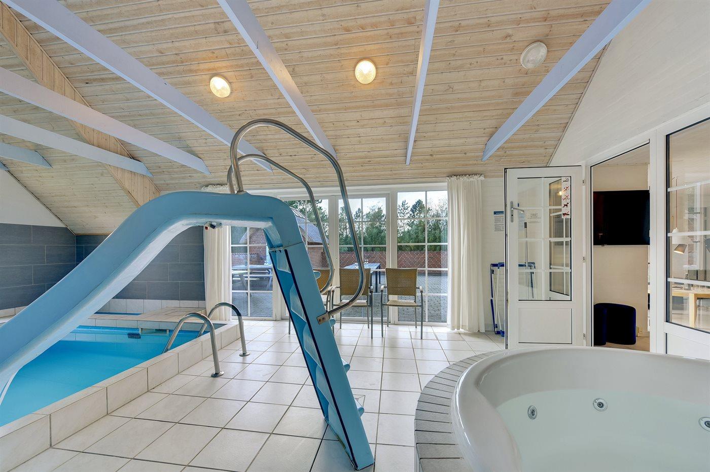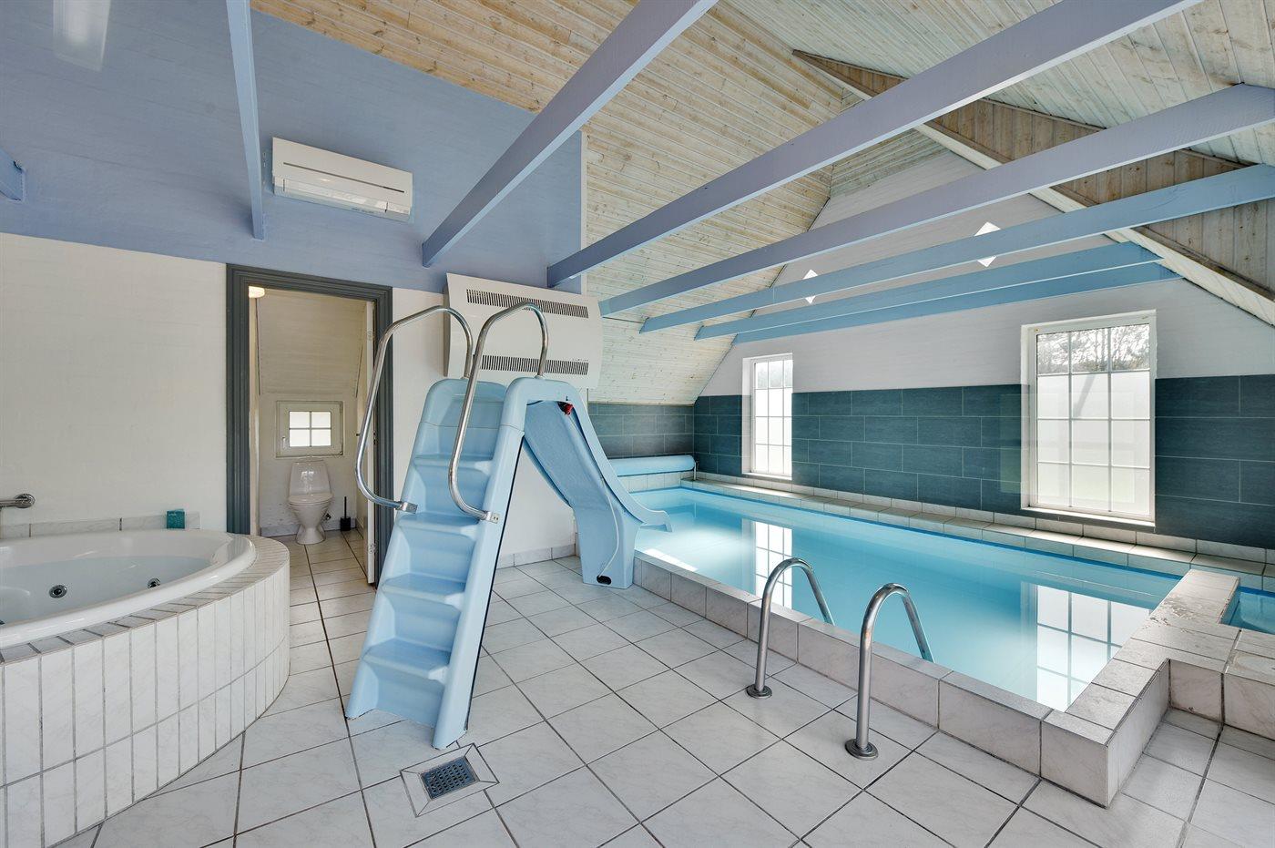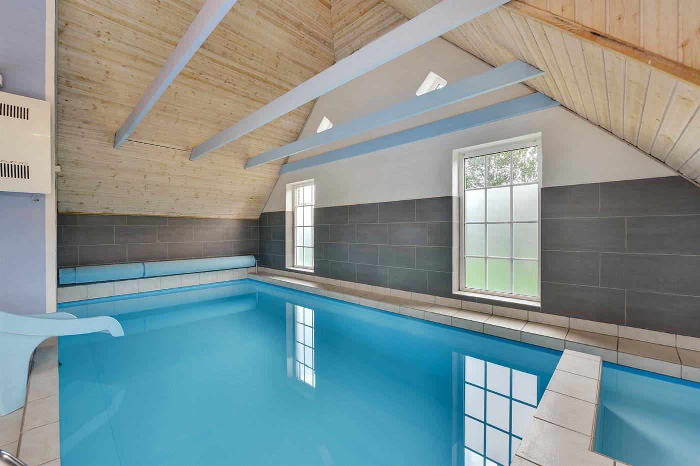 I den indendørs swimmingpool er der mulighed for leg og hyggeligt samvær. Swimmingpoolen måler op til 3 m i bredden, 5,8 m i længden og den er op til 1,3 m dyb. Vandet er mellem 24 og 28° C varmt. Swimmingpoolen har modstrømsanlæg. Til de små er der desuden børnepool.