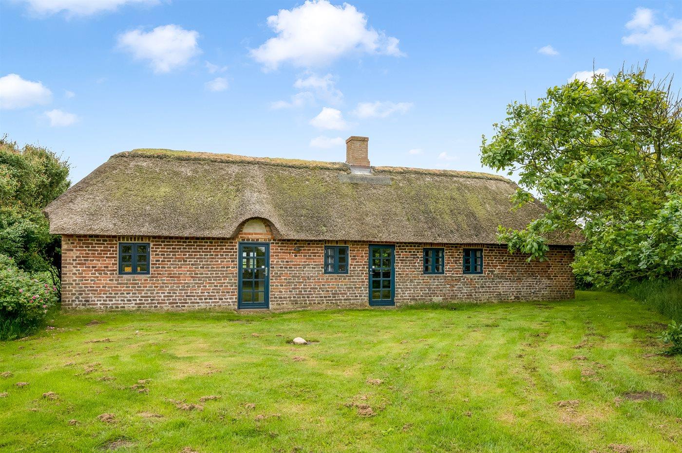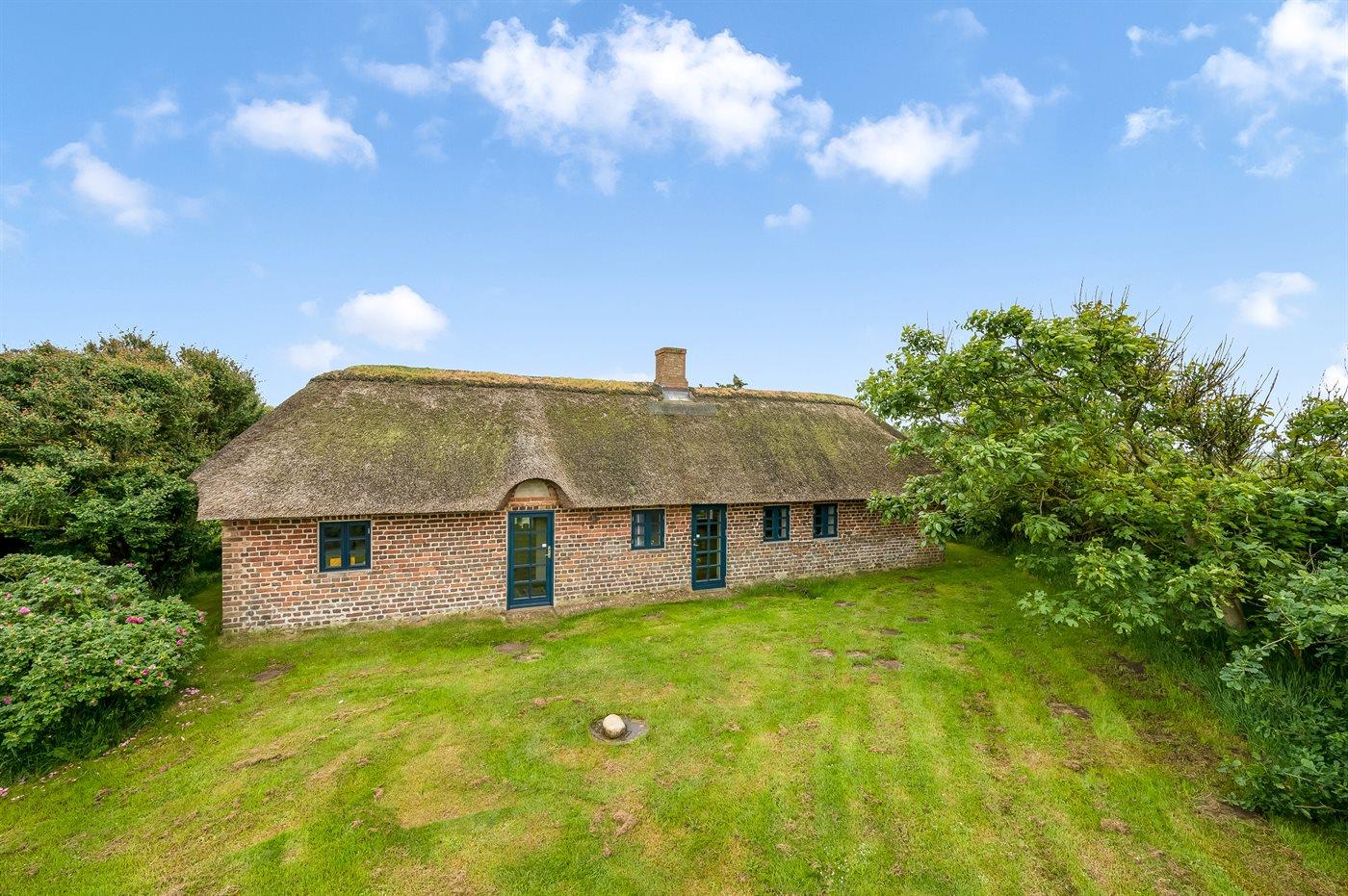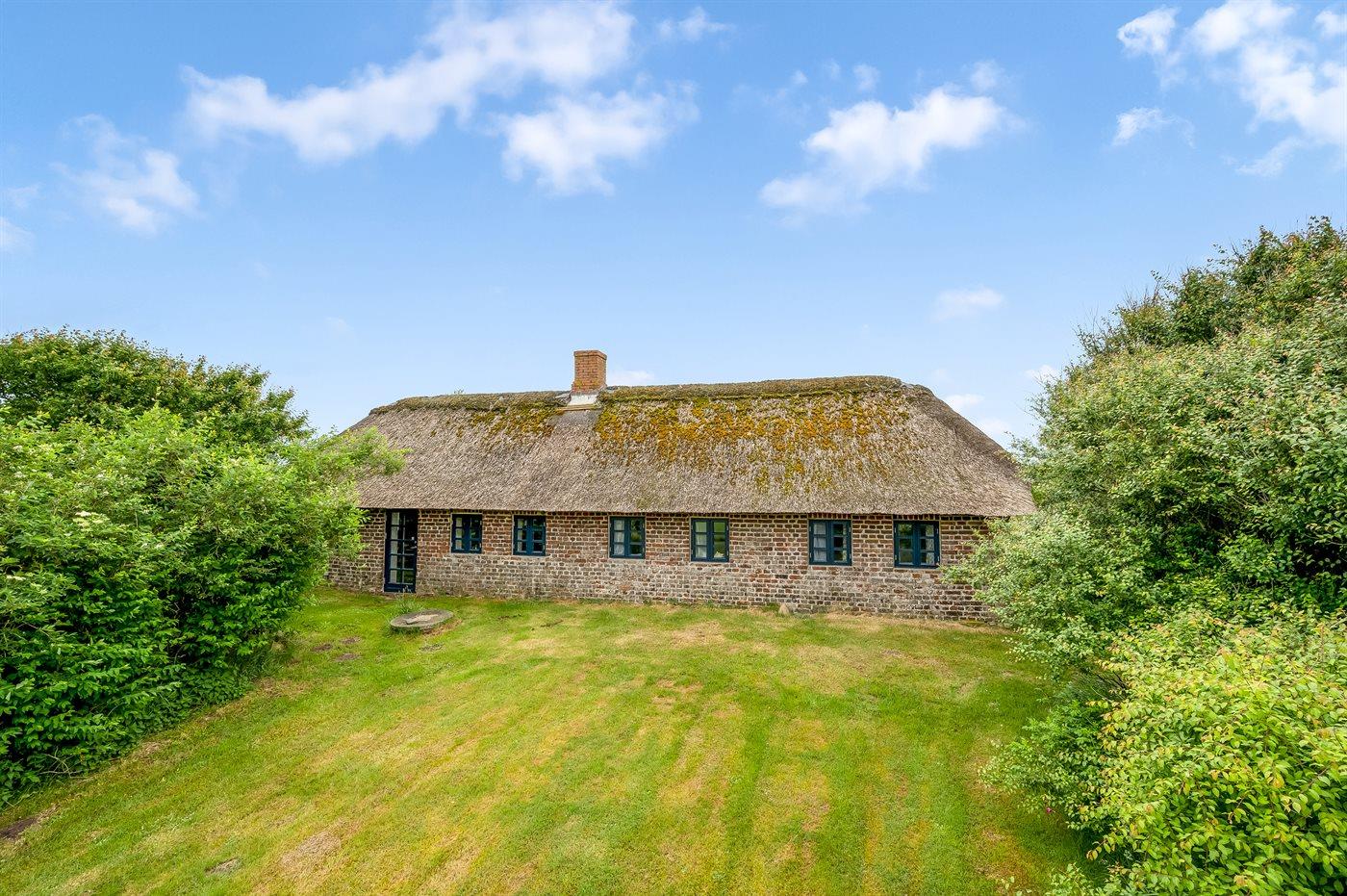 På landet, omgivet af frodige marker, finder du dette charmerende stråtækte bondehus, indhyllet i idyl. Huset byder velkommen til fire personer med sin rummelige og hyggelige atmosfære.