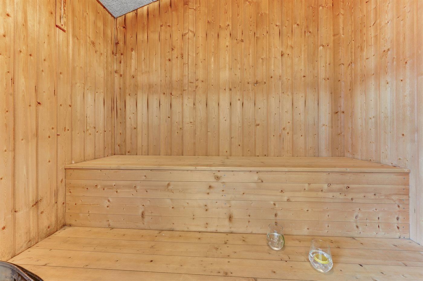 Der er 2 badeværelser med bruseniche og 2 toiletter. Der er gulvvarme på 2 badeværelser. I saunaen er der mulighed for afslapning.