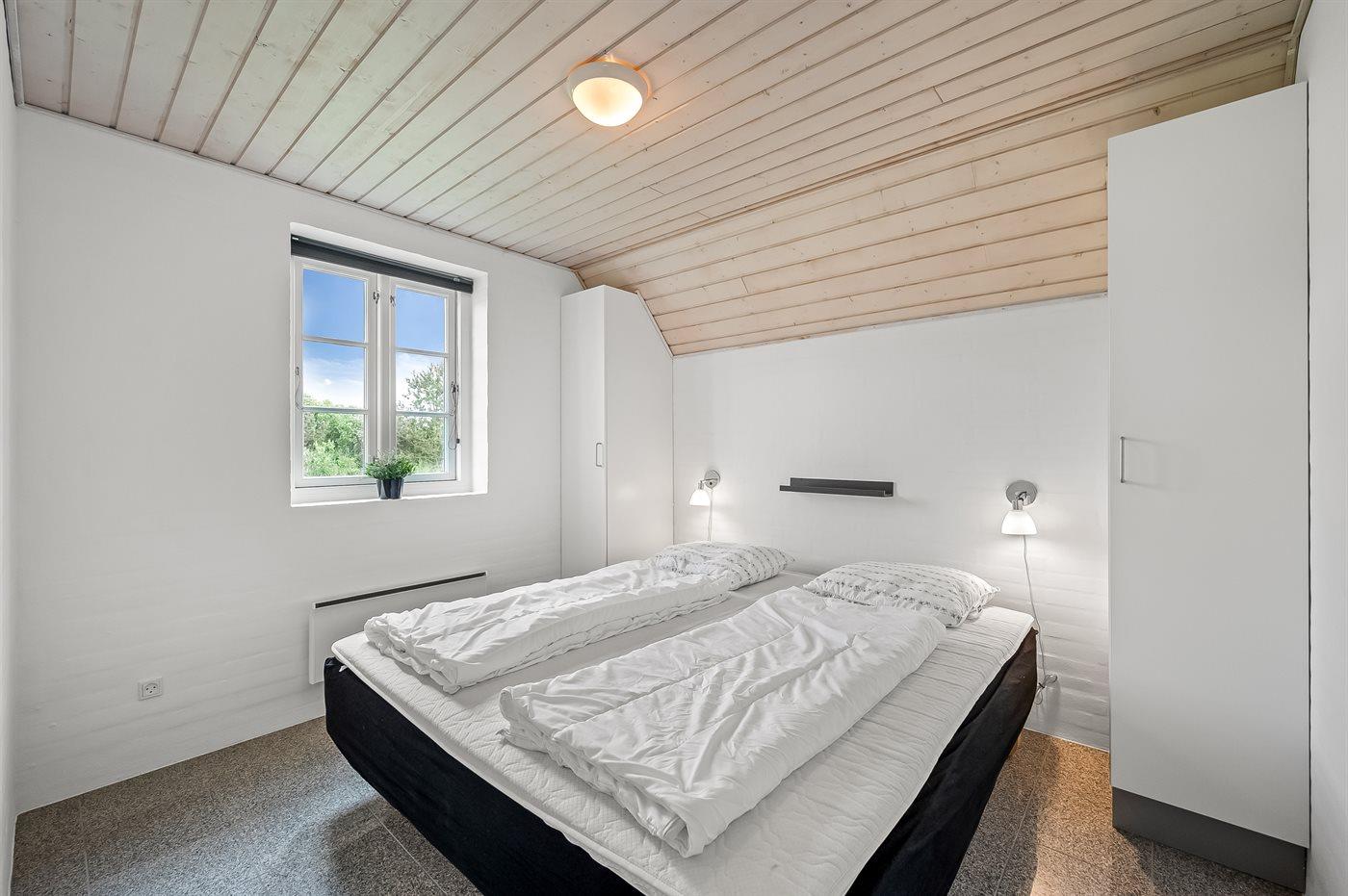 Der er i alt 4 soveværelser. Sovepladserne fordeler sig på: 6 sovepladser i dobbeltsenge. 4 sovepladser i køjesenge. Derudover er der 1 stk. barneseng.
