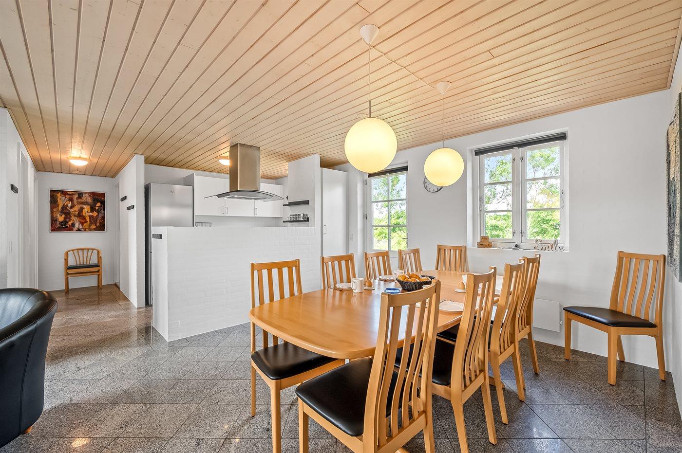 Køkkenet er udstyret med 1 køleskab. Der er 4 keramiske kogeplader, varmluftovn, mikrobølgeovn samt opvaskemaskine.