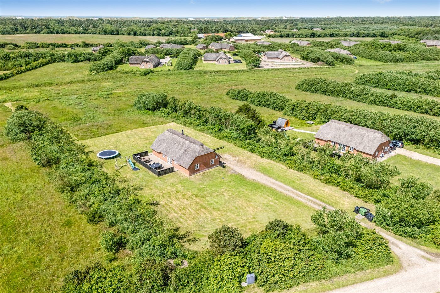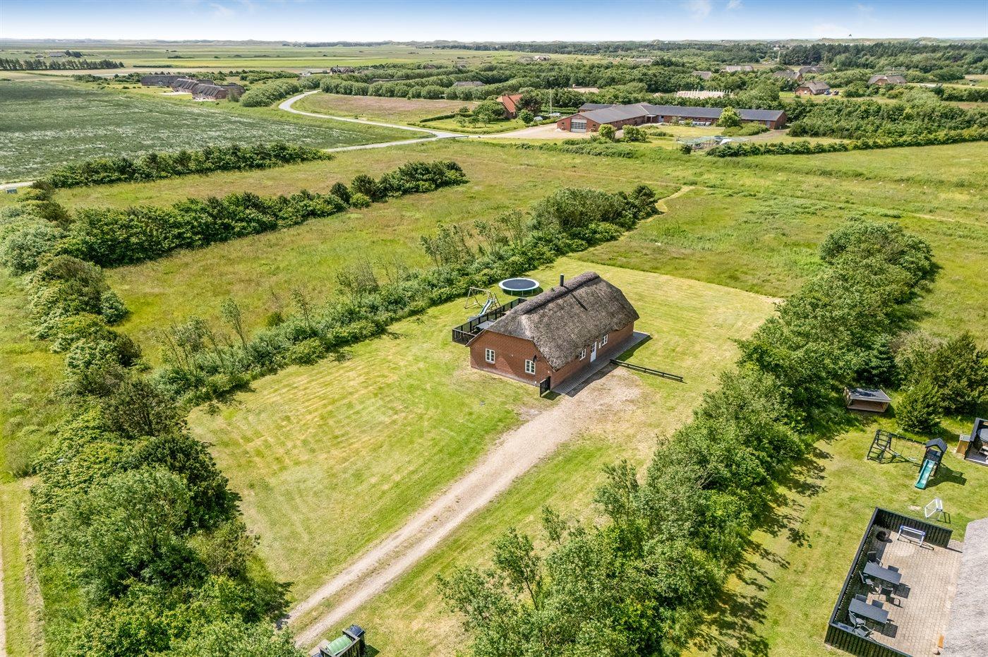 Ferieboligen er beliggende på en 3502 m² stor naturgrund. Der er 1200 m til havet. Nærmeste forretning er beliggende i en afstand af 800 m. Til ferieboligen hører åbent terrasseareal. Gynge. Trampolin. Parkering ved ferieboligen.