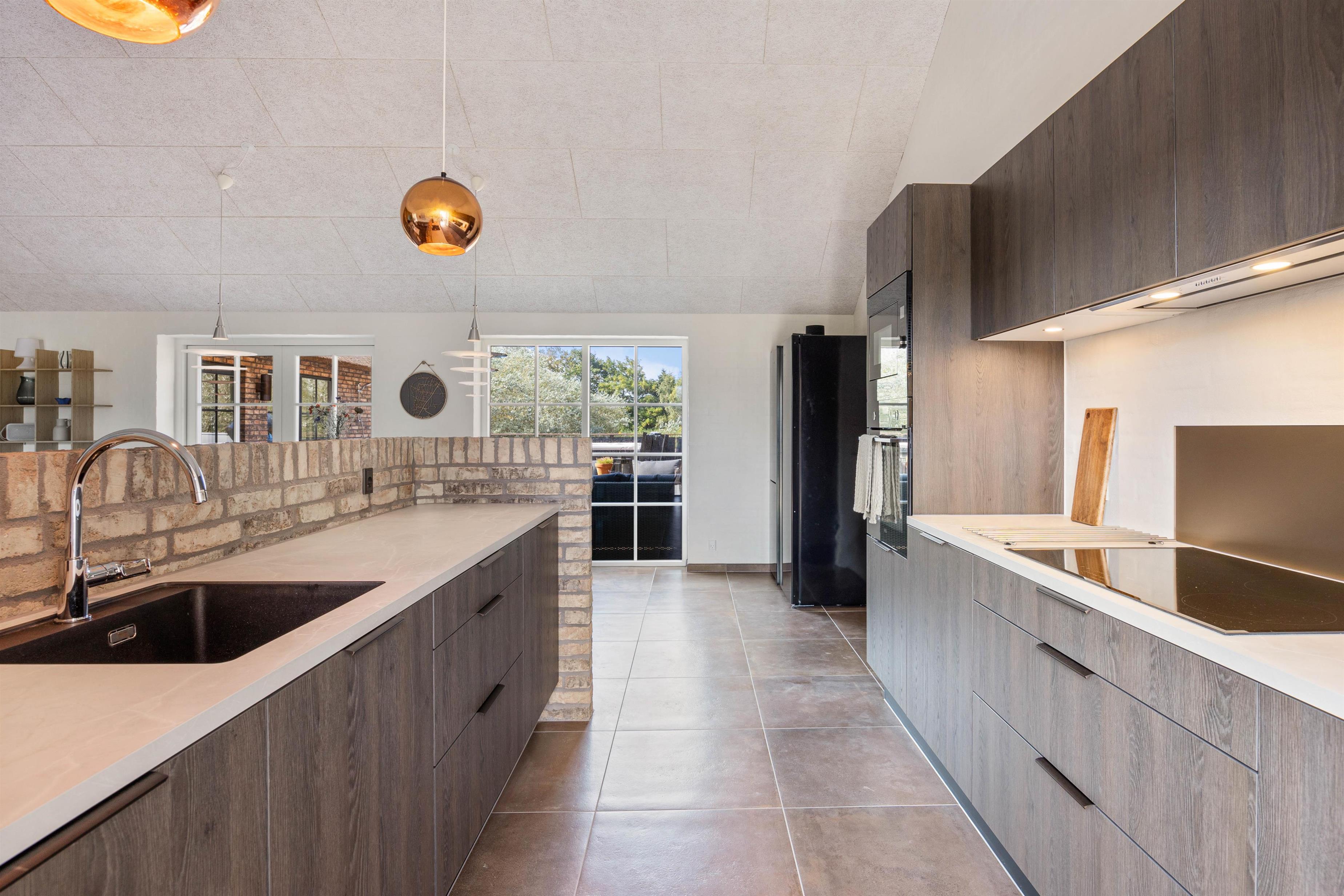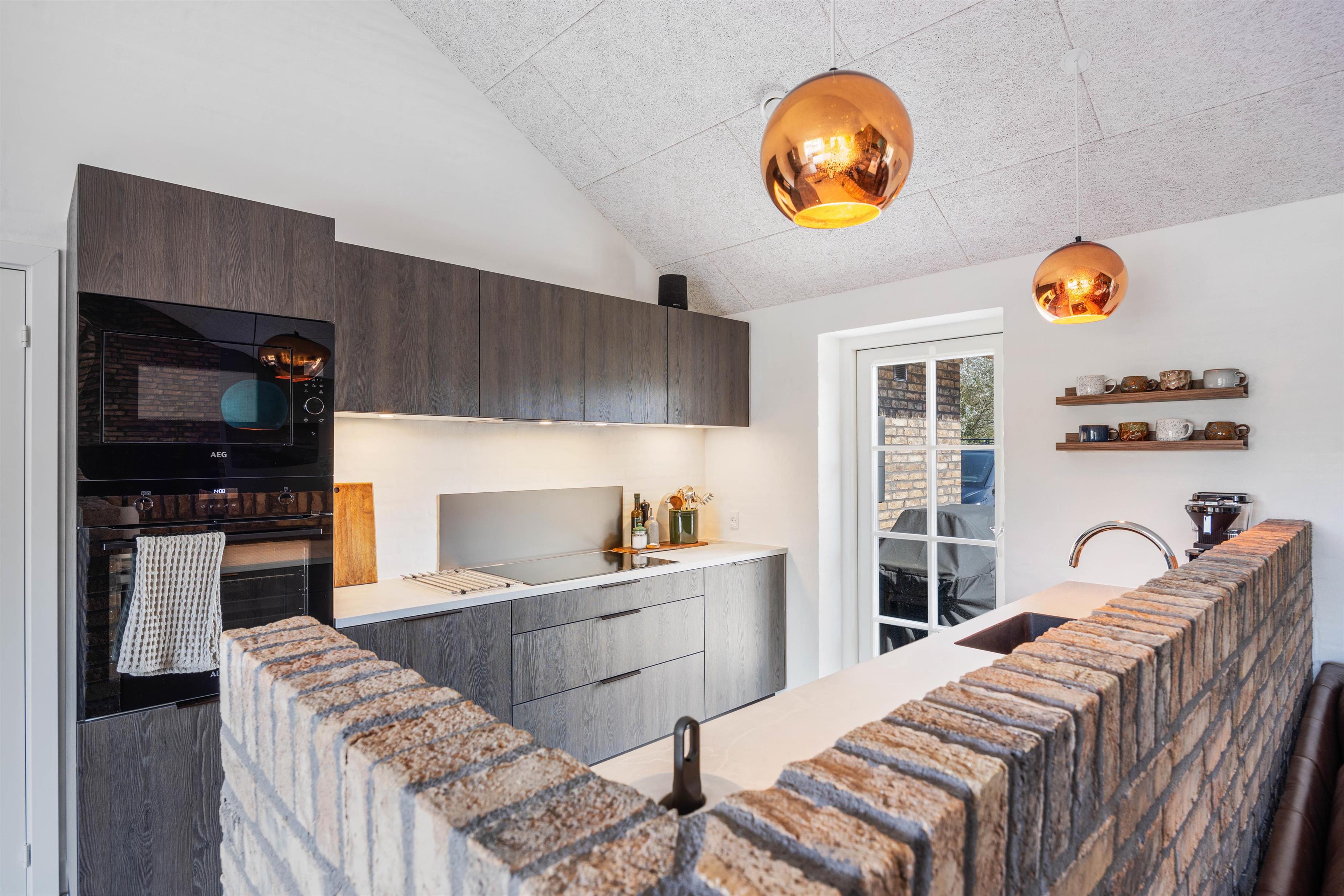 Så snart I træder ind i dette feriehus, der er opført i 2024, kan jeres ferie begynde. Feriehusets midtpunkt er det centralt placerede opholdsrum, der binder stuen og køkken-alrummet. Køkkenet er udstyret med induktionskogeplade, opvaskemaskine, mikroovn samt en rummelig 80-liters fryser.