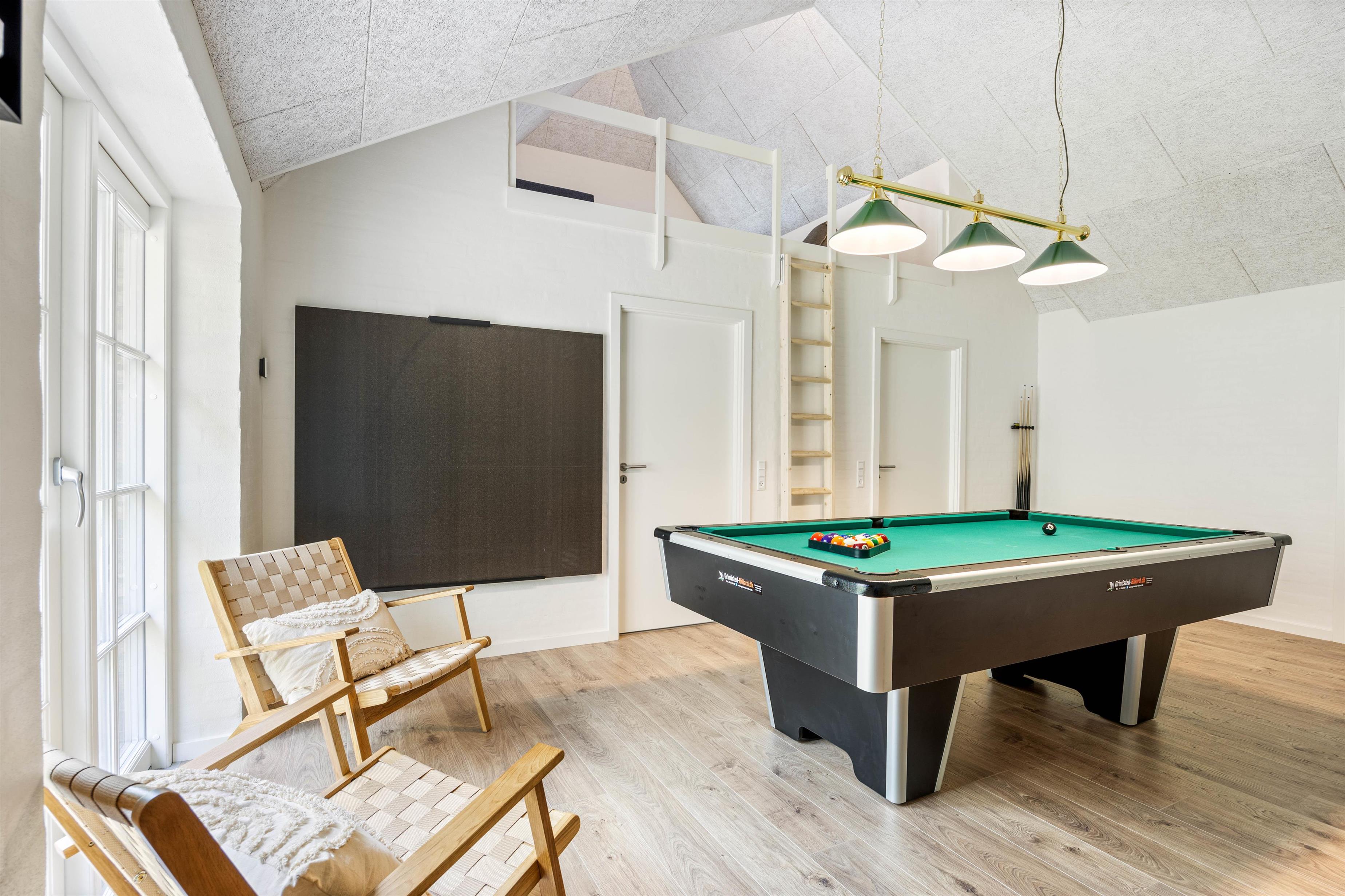 Ud over wellnessområdet byder dette hyggelige feriehus på andre højdepunkter. Aktivitetshuset giver jer gode muligheder for at tilbringe mange hyggelige timer sammen hele året rundt – uanset vejret. Konkurrér om at blive feriens mester med et spil bordtennis, billard eller en tur ved flippermaskinen. Her er I garanteret mange hyggelige og sjove timer - både for store og små.