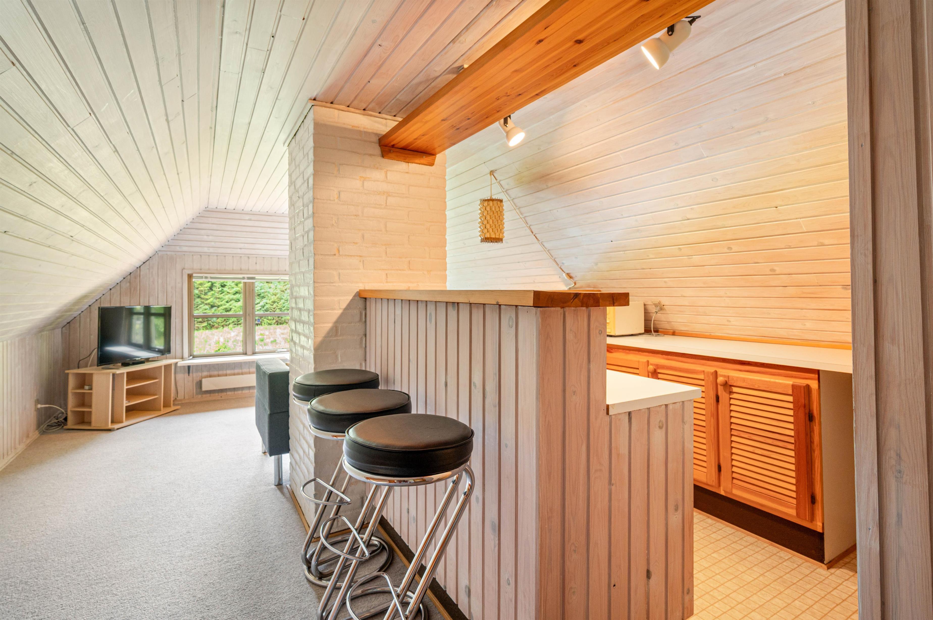 På førstesalen finder I endnu en stue, to af de tre soveværelser samt et gæstetoilet (uden bruser). Fra husets badeværelse er der adgang til saunaen, som helt sikkert bliver et hit på de sene aftener og blæsende efterårsdage.