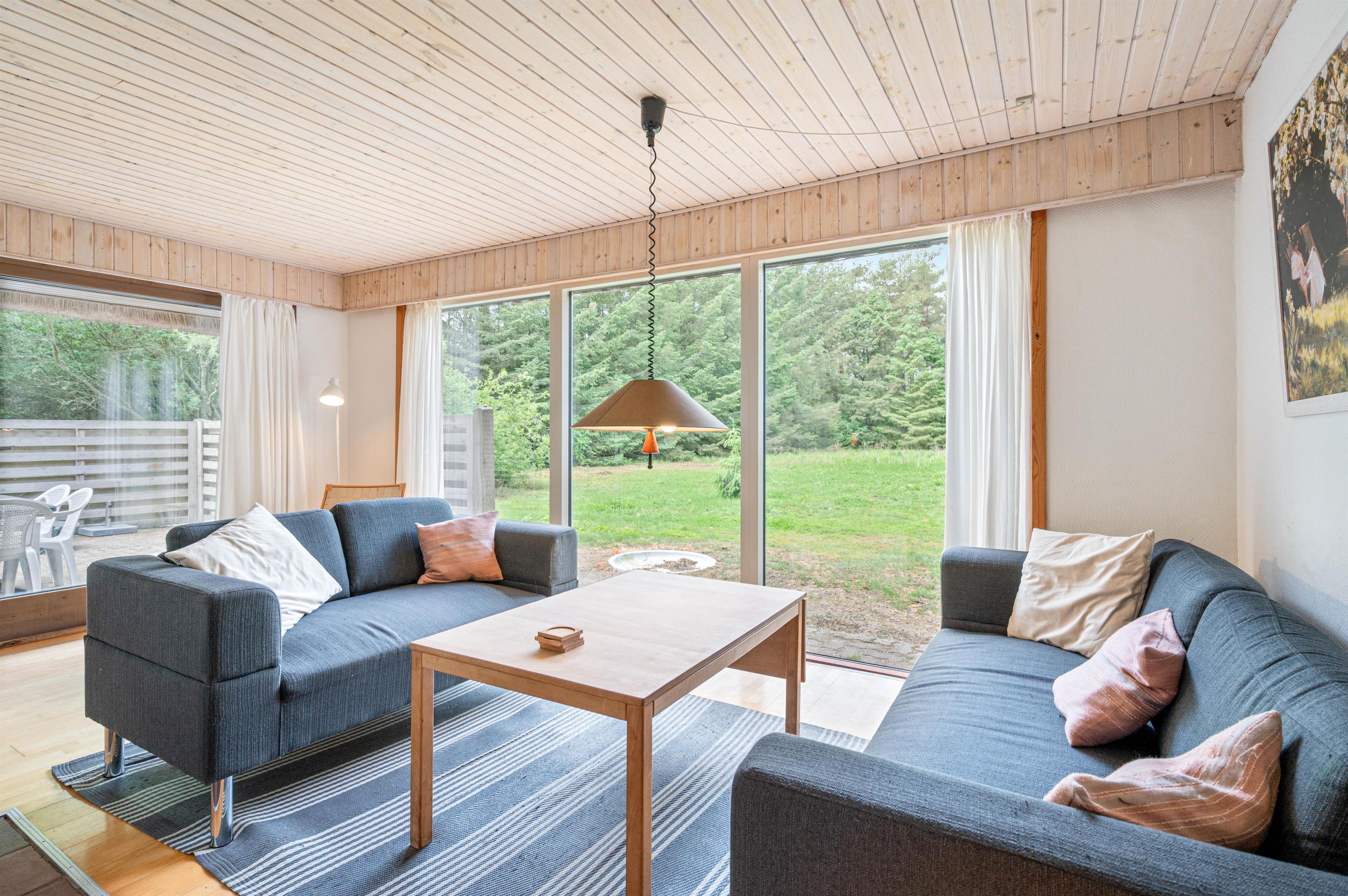 Feriehuset ligger på en 5.000 kvadratmeter stor naturgrund med god plads til både afslapning og udendørs aktiviteter - på både den åbne og lukkede terrasse. Med lidt held får I lov at hilse på områdets faste gæster: de nysgerrige rådyr, som ofte kommer forbi.
