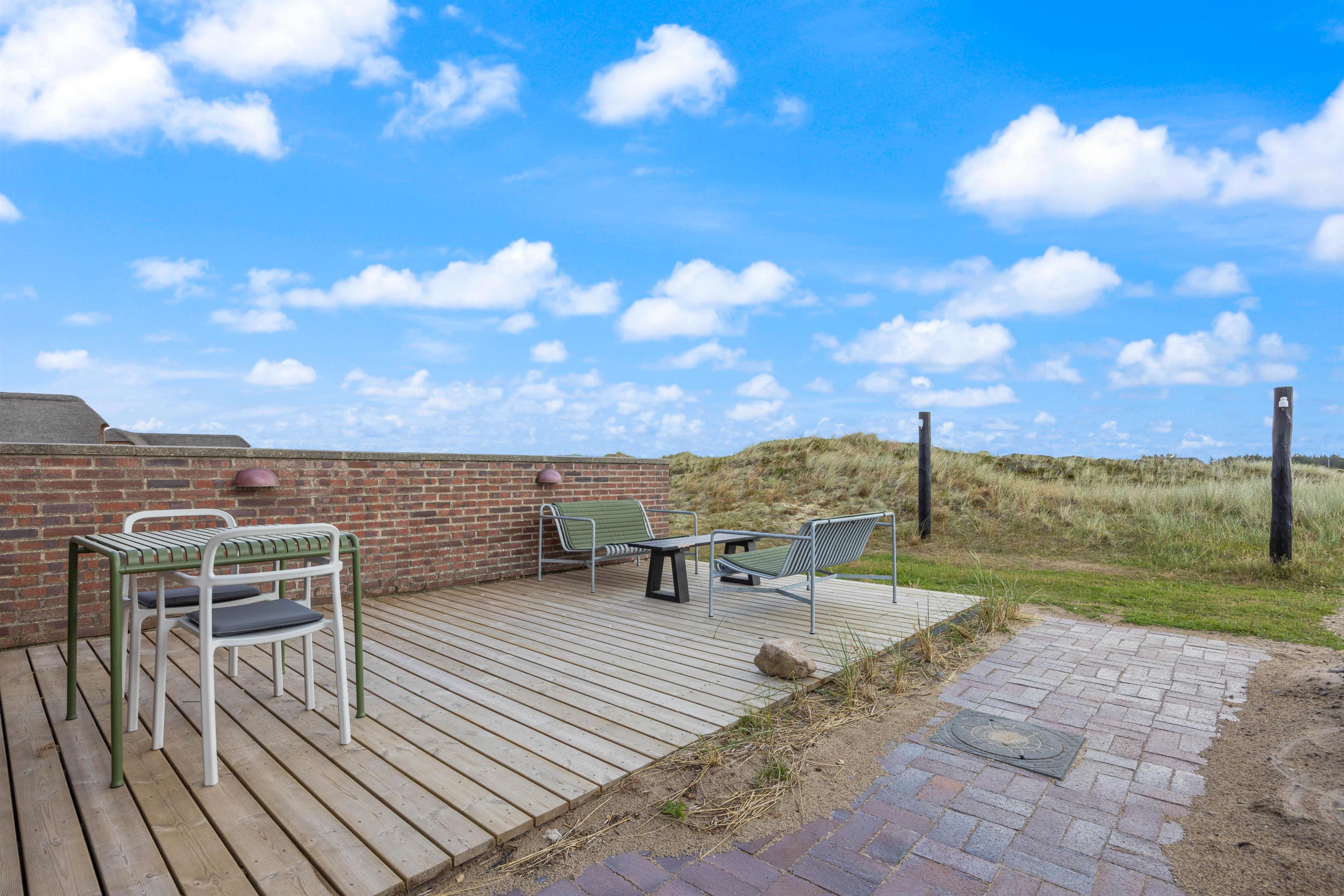 Når I efter en lang spadseretur trænger til at få varmen igen, har I mulighed for at benytte feriehusets sauna, hvor I rigtig kan nyde varmen og slappe af med hinanden. I har endda adgang til saunaen udefra, så I er fri for at slæbe sand og lignende ind i sommerhuset. Herfra kan I ovenikøbet nyde den dejlige udsigt imens I får et glas koldt at drikke.