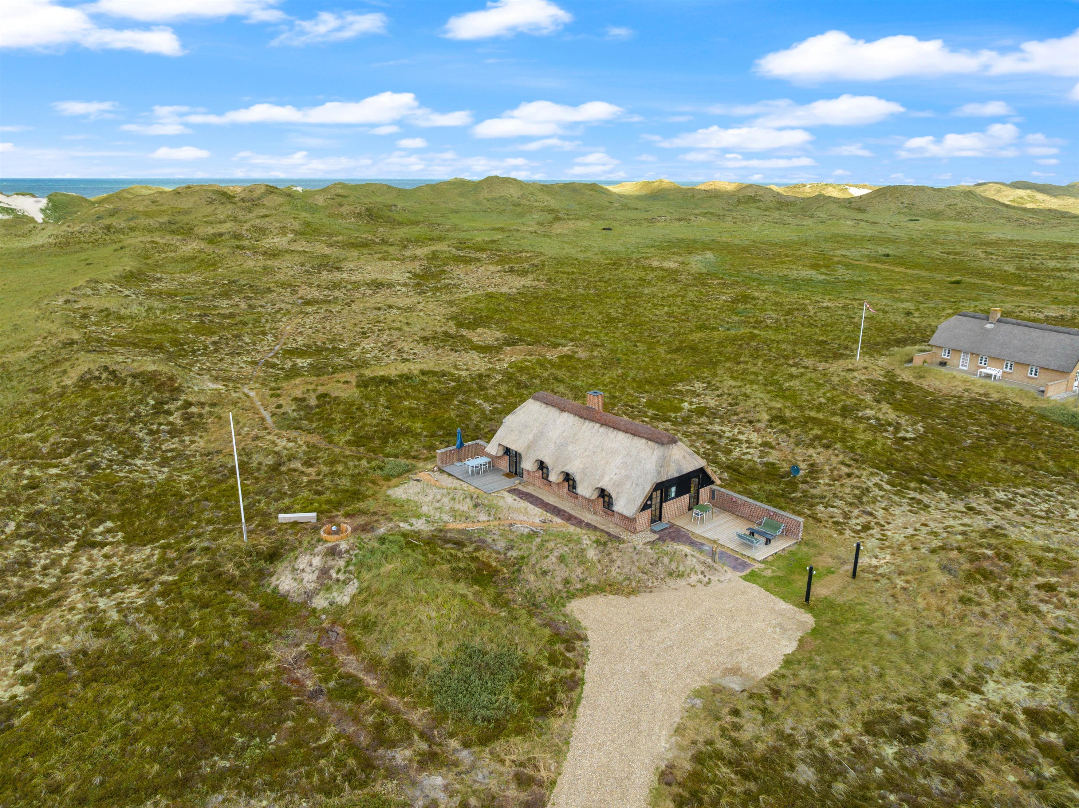 Det charmerende stråtækte feriehus på Raketvejen 30 i Vester Husby ligger på en stor natur- og klitgrund i 1. klitrække, hvor områdets enestående natur hersker. Feriehuset er renoveret i 2023 og fremstår hyggeligt med en personlig indretning. I har desuden rig mulighed for at nyde den skønne panoramaudsigt i den smukke omkringliggende natur bl.a. med udsigt til Sømærket i Vedersø.