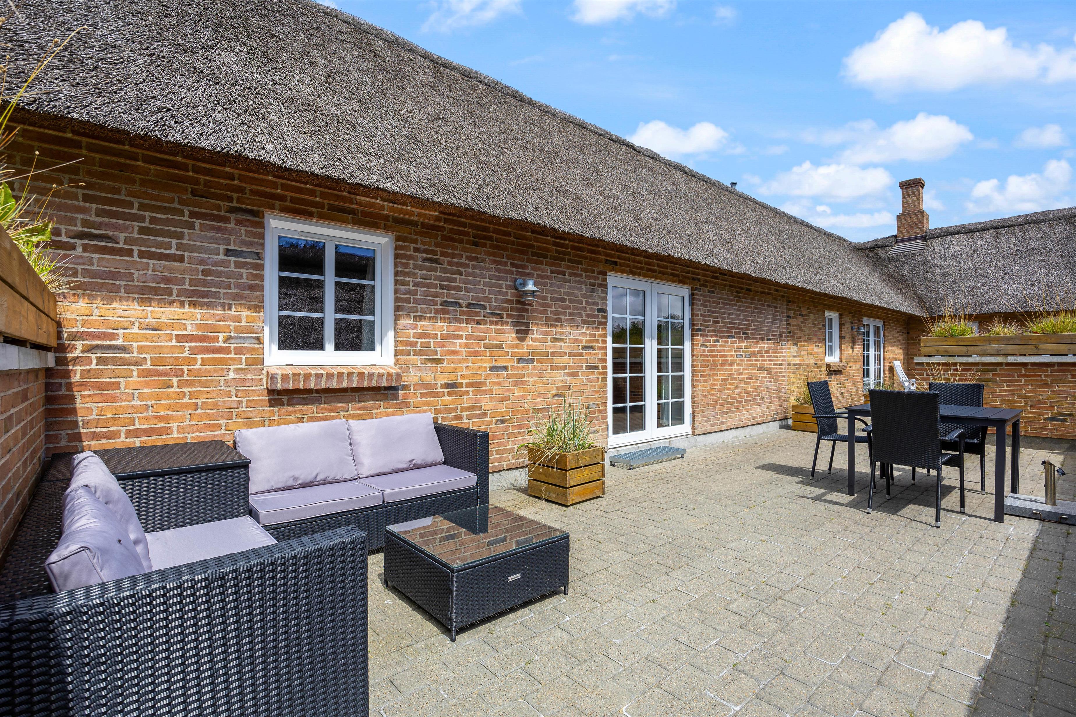 Lyst og indbydende stråtækt feriehus med brændeovn