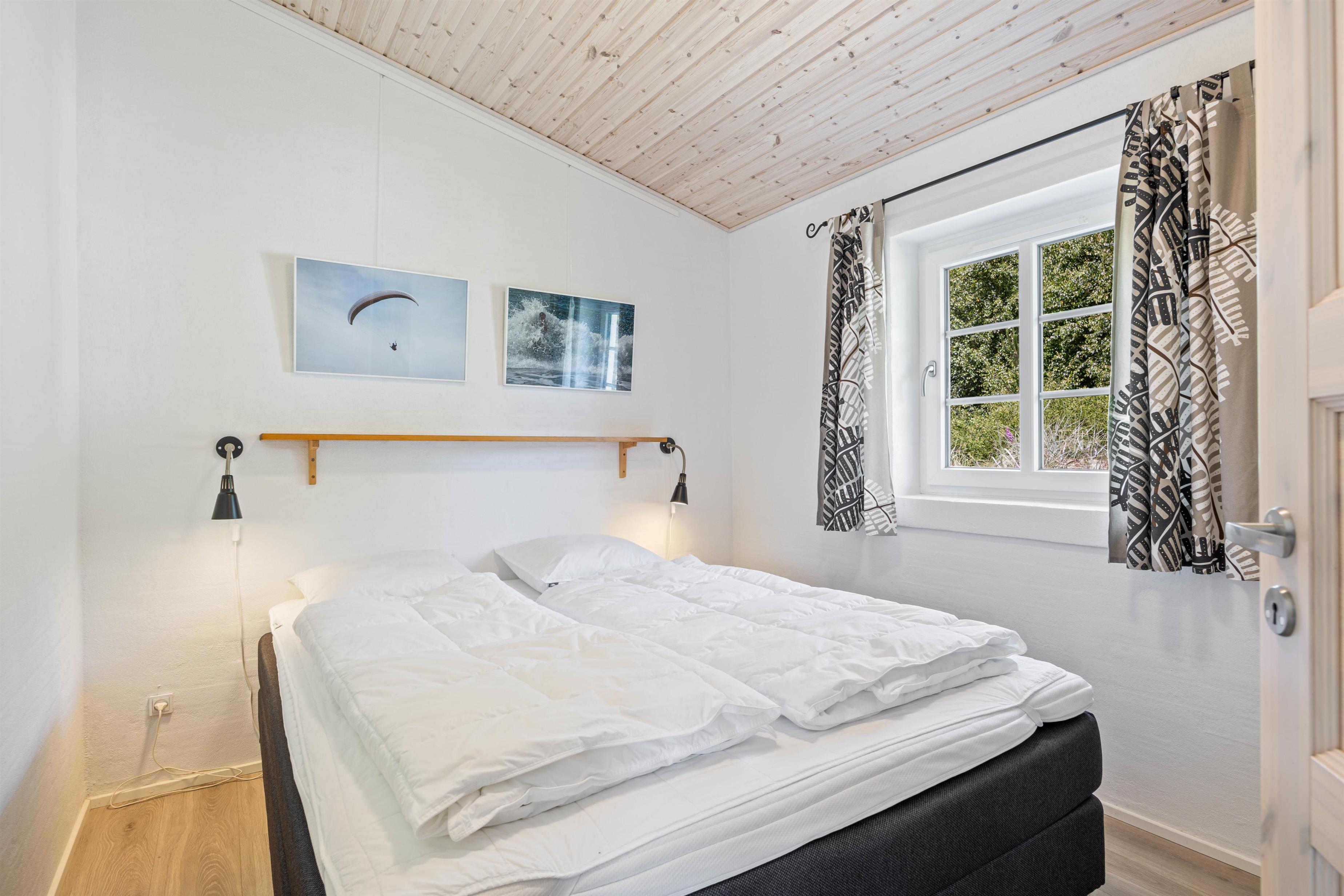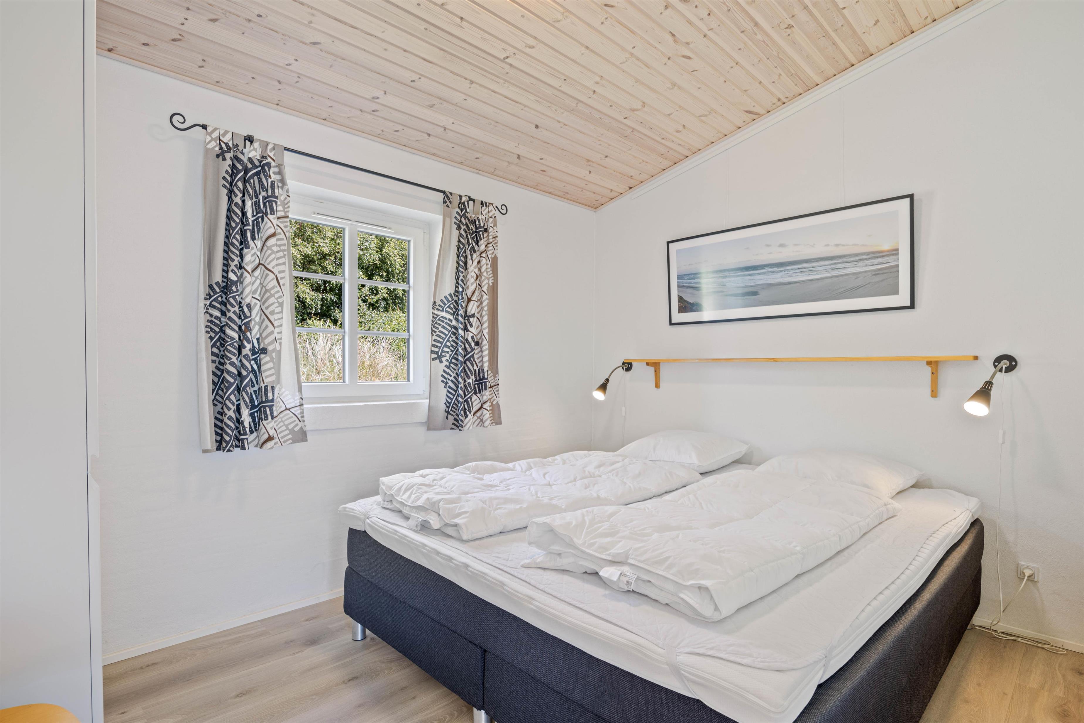 Er I på udkig efter et feriehus, som emmer af fred og idyl? Så er feriehuset på Kjærgaardvej 42 i Vester Husby, et rigtig godt valg for jer. Her har I et feriehus, som ligger på en helt afskærmet naturgrund, som er omringet af høje træer, som gør at I ikke bliver generet af andre omkring jer. Her er kun 1200 meter til stranden og det brusende Vesterhav, og kun 2000 meter til nærmeste indkøb, så her er I tæt på alt det nødvendige, for at I kan holde en god ferie. Rejser I i elbil, har I her mulighed for at oplade den ved huset, såfremt I medbringer jeres eget ladekabel. Der er solceller på sommerhuset, og husejer har valgt at forærre solcellestrømmen til gæsterne. Det vil sige at sommerhusets 5,2kw anlæg levere gratis strøm når solen skinner.