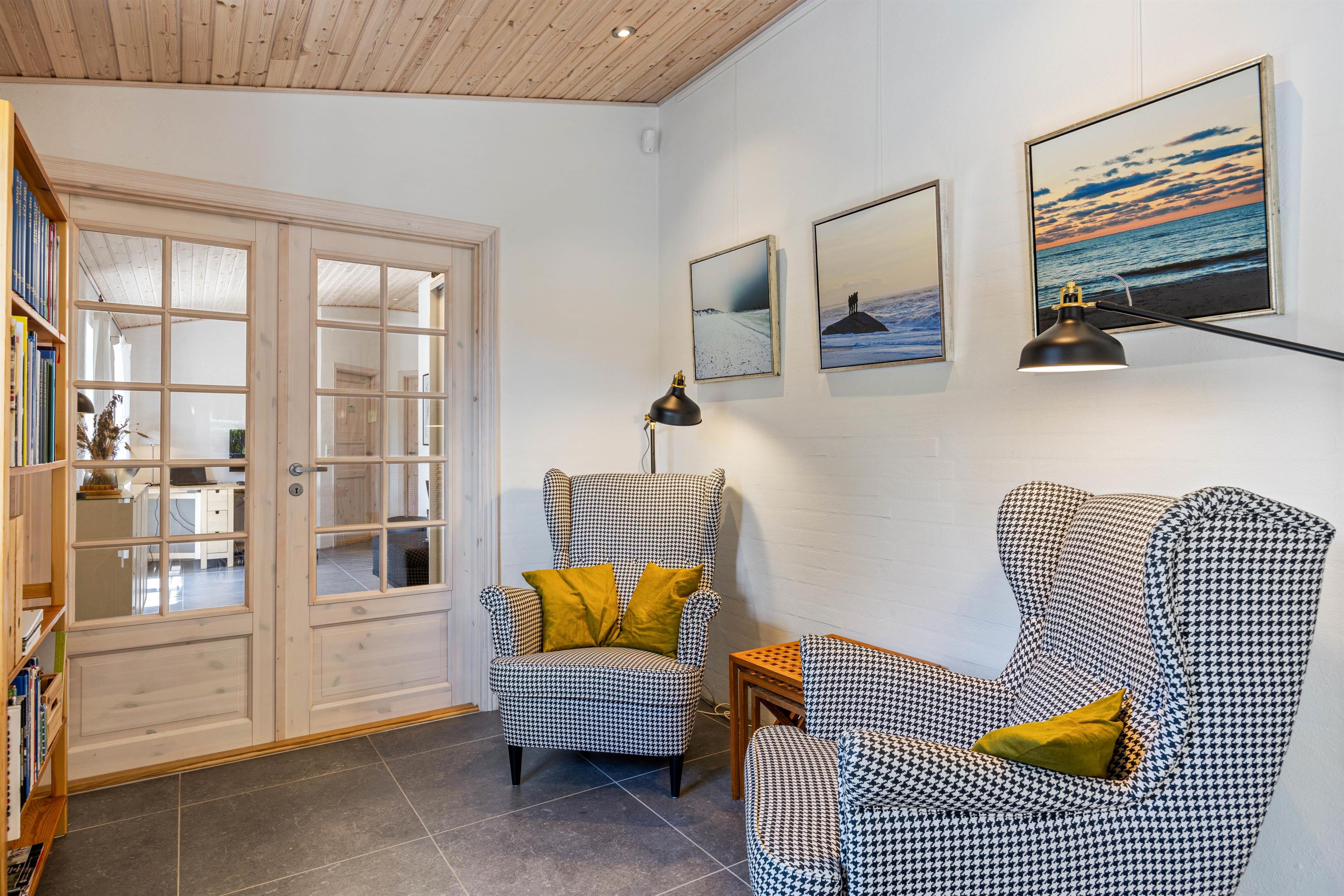 Feriehuset på Kjærgaardvej 42 i Vester Husby er ideelt for jer, der ønsker dejlig ro og afslapning. Feriehusets stue er i åben forbindelse med et stort og veludstyret køkken og alrum, så I alle kan være sammen, uanset om I står i køkkenet og tilbereder et lækkert måltid mad til familien, eller om I sidder ved spisebordet, og planlægger feriens næste aktiviteter.