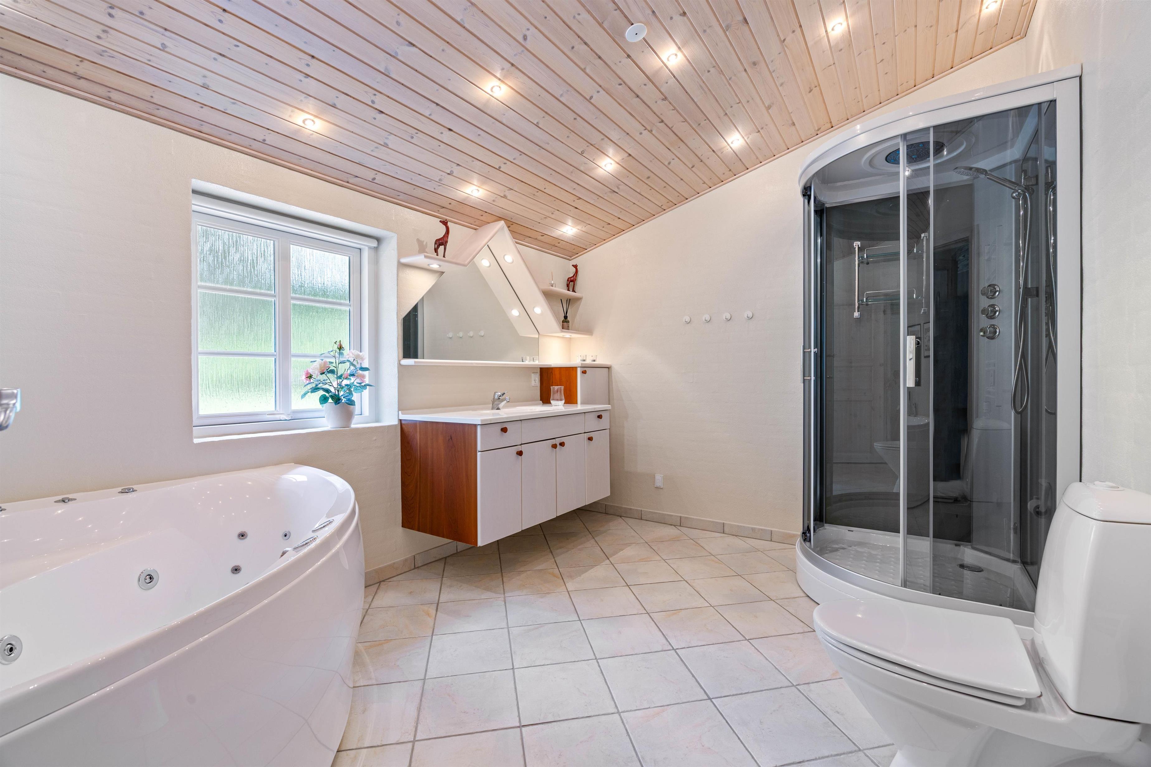 Dette charmerende feriehus er indrettet med 3 komfortable soveværelser og 2 badeværelser, hvoraf det ene er udstyret med spabad – perfekt til en afslappende ferie med familie eller venner. Spabadet skaber den ultimative følelse af velvære, hvor I kan sidde og lade tankerne flyve, mens kroppen slapper af.