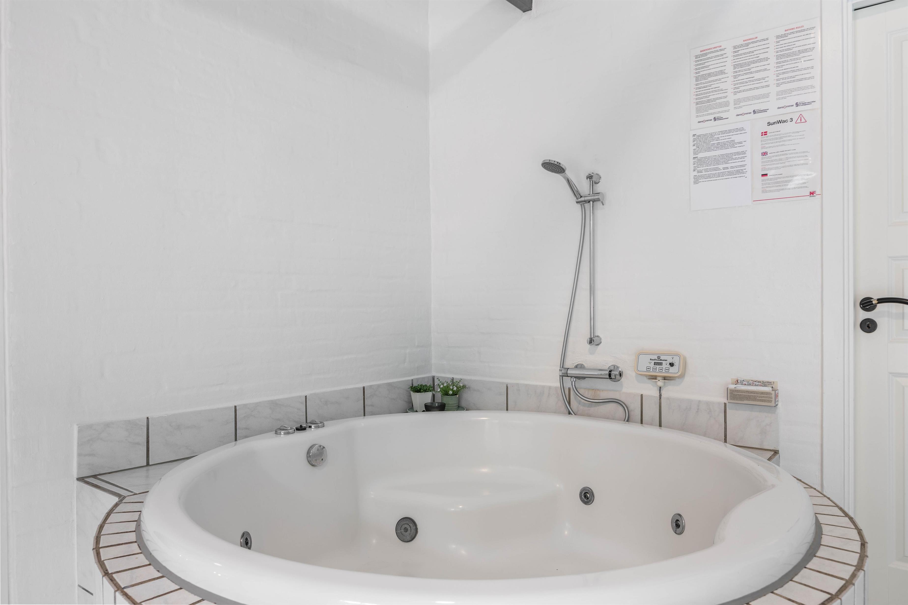 I dette dejlige feriehus finder I en pool, som har en indbygget svømmetræner, så her har I rig mulighed for at få brugt en masse energi. Derudover finder I også en tømmespa og en sauna, som I helt sikkert vil finde glædeligt efter en god lang gåtur rundt i det betagende område feriehuset ligger i.