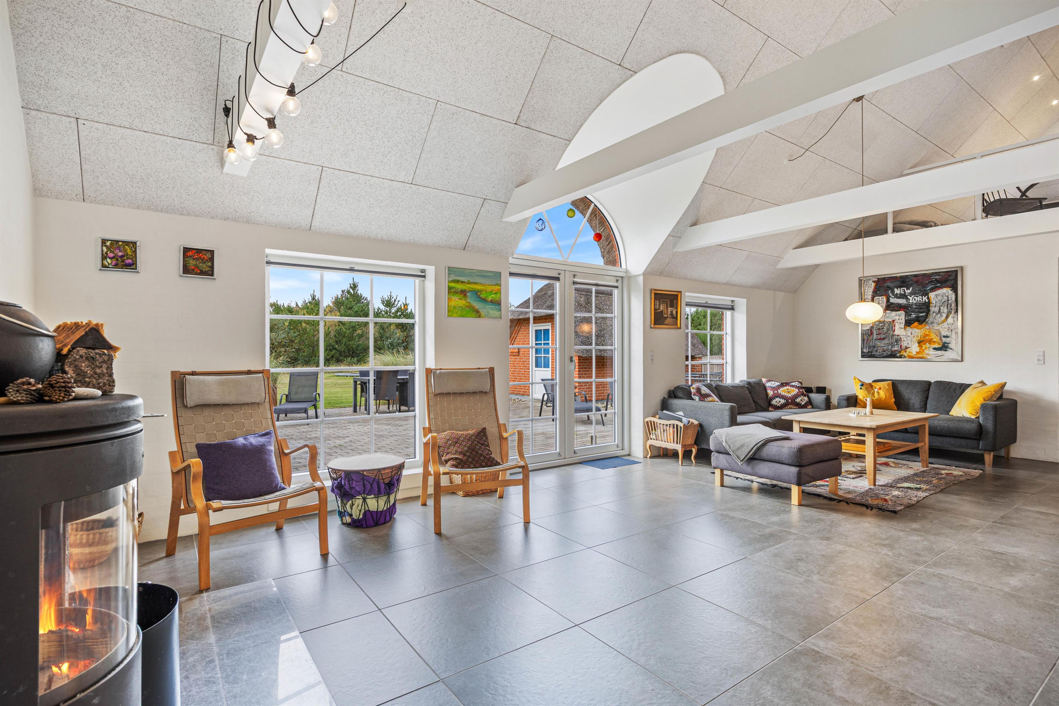 I Hjertet af huset er det store lyse opholdsrum. De hvidmalede træbjælker, store vinduer og brændeovnens centrale placering giver huset et moderne men rustikt look. Køkkenet, stuen og spiseområdet står i åben forbindelse til hinanden, så der oser af hygge og bydes ind til samvær til hele familien. Samtalekøkkenet er udstyret med alt det praktiske I skulle få brug for. Her kan I udleve jeres køkkendrømme, mens resten af familien streamer en god film på Chromecast i stuen eller nyder en bog. Begge badeværelser har gulvvarme og i det ene finder I et lille frirum: Det er udstyret med både sauna og spa, -en lille oase til selvforkælelse.
