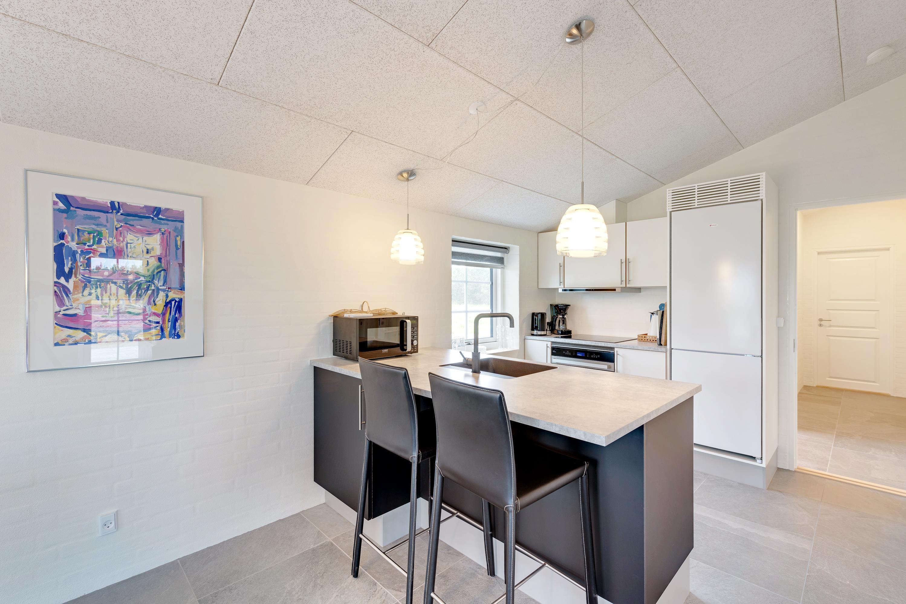 Både opholdsrummet, soveværelset og feriehusets 2 badeværelser er udstyret med gulvvarme, og der er også en energibesparende varmepumpe, så I altid har et behageligt rumklima uden store omkostninger. I får desuden en hurtig og stabil internetforbindelse, så I kan streame film og serier på sofaen på jeres iPad’s og computere.
