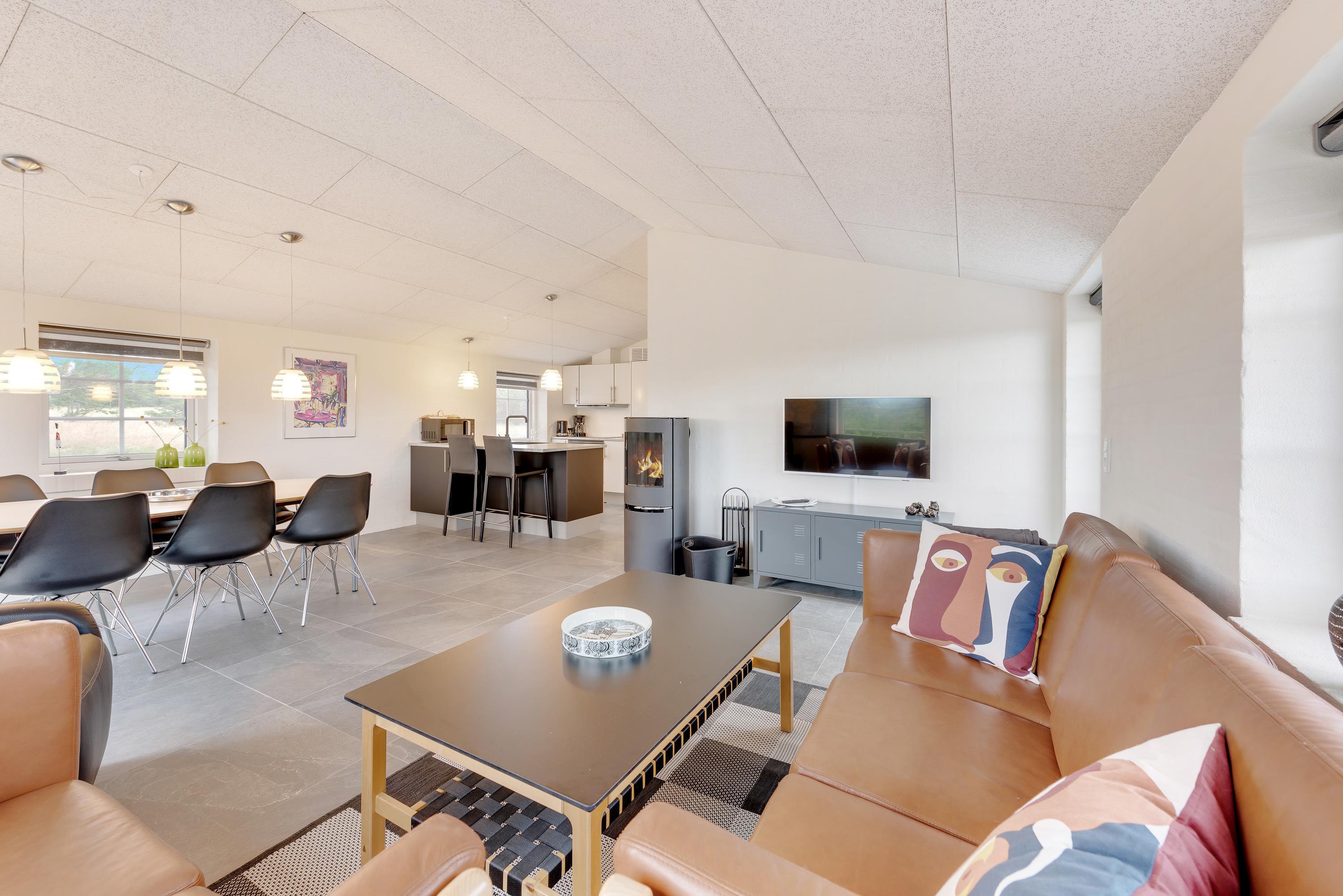 Velkommen på Svollingvej 30 – en ferieadresse, hvor der bestemt ikke mangler noget. Ferieboligen er opført i 2020 i moderne og stilfulde kvalitetsmaterialer, stadigvæk med et strejf af den klassiske sommerhusstemning med brændeovn i stuen og en naturskøn udsigt gennem vinduerne til Husbys lyngklædte hedelandskab.