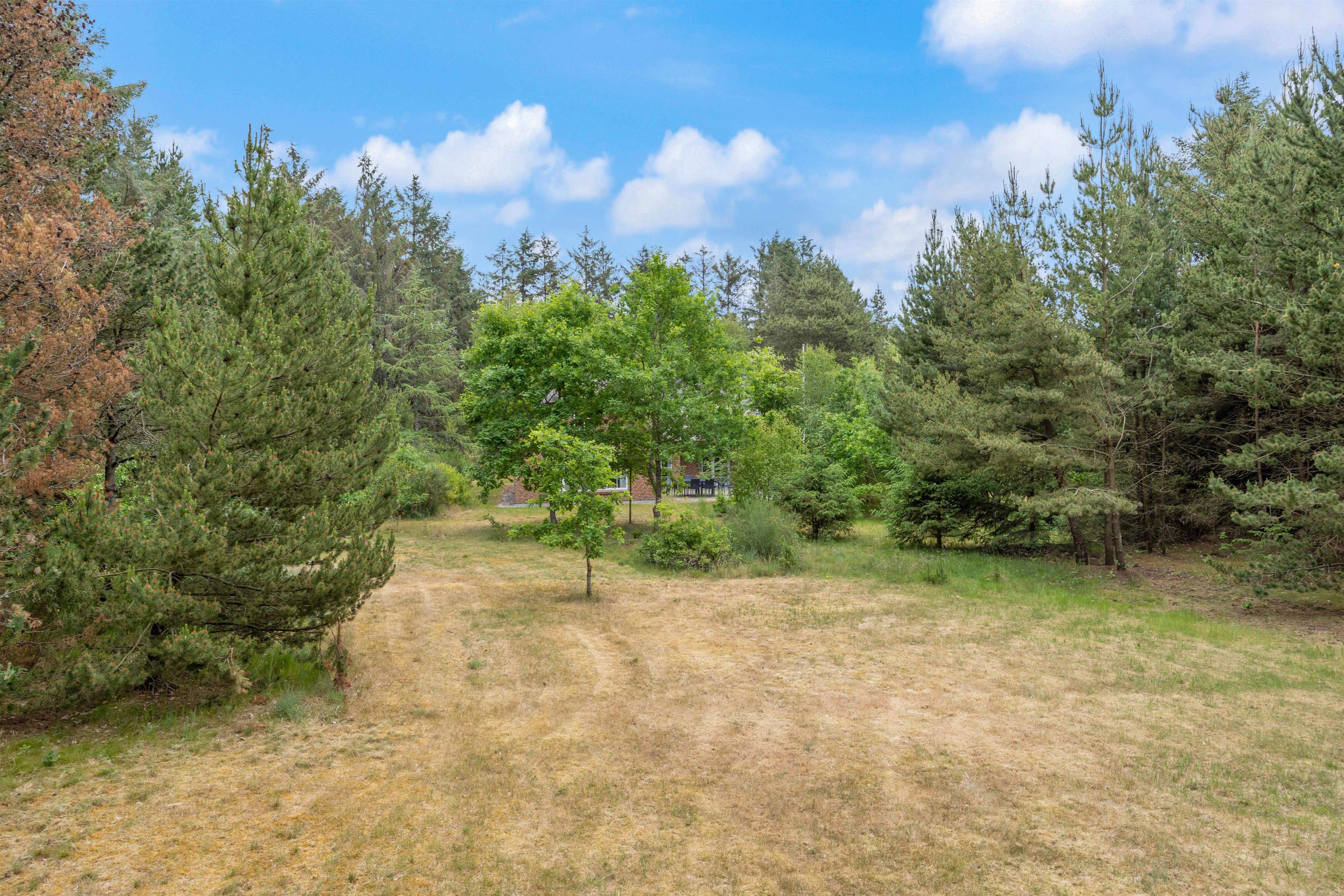 Feriehuset ligger på en godt 5000 m2 stor naturgrund. På den store sydvendte terrasse kan I nyde stilheden og udsigten til de mange frugttræer på naturgrunden, hvor man ofte får besøg af både harer og rådyr. I haven er der også god plads til at børnene kan lege. Efter en lang dag i den friske luft, kan I slutte dagen af med at grille aftensmaden på gasgrillen, der står på terrassen.