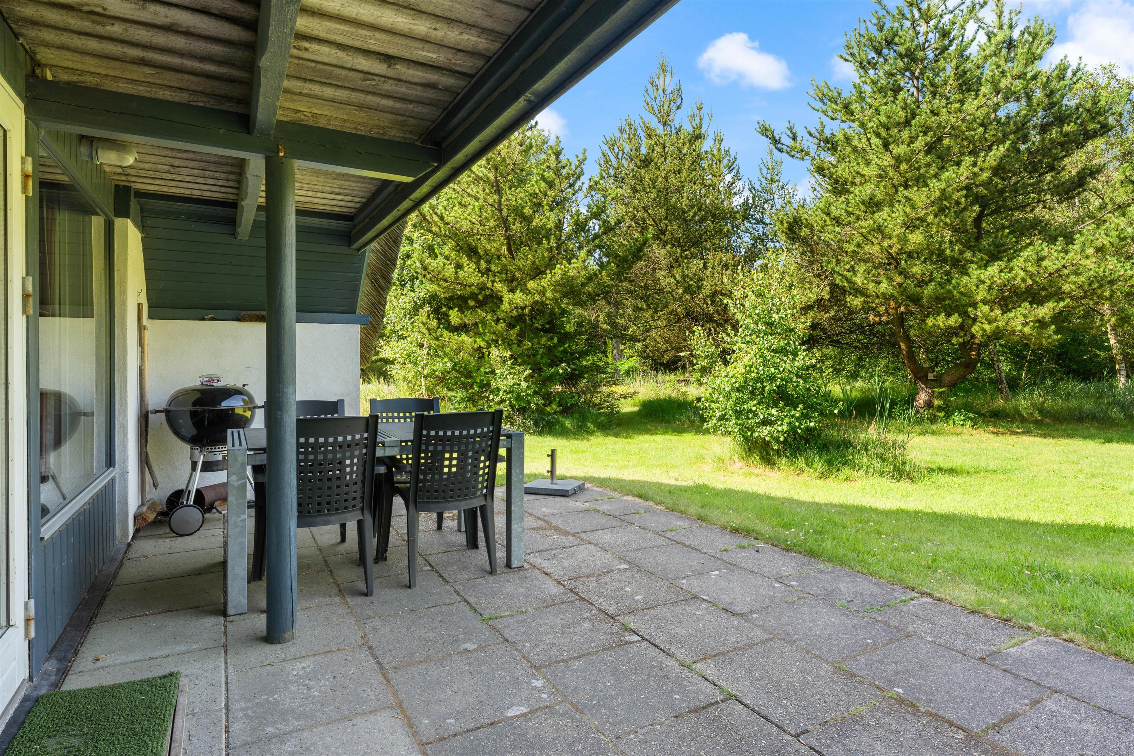 Den delvist overdækkede terrasse giver jer god mulighed for at grille og spise sammen udenfor og nyde de lyse sommernætter. Og mens I nyder maden, kan I holde øje med børnene og hunden, der leger i haven.