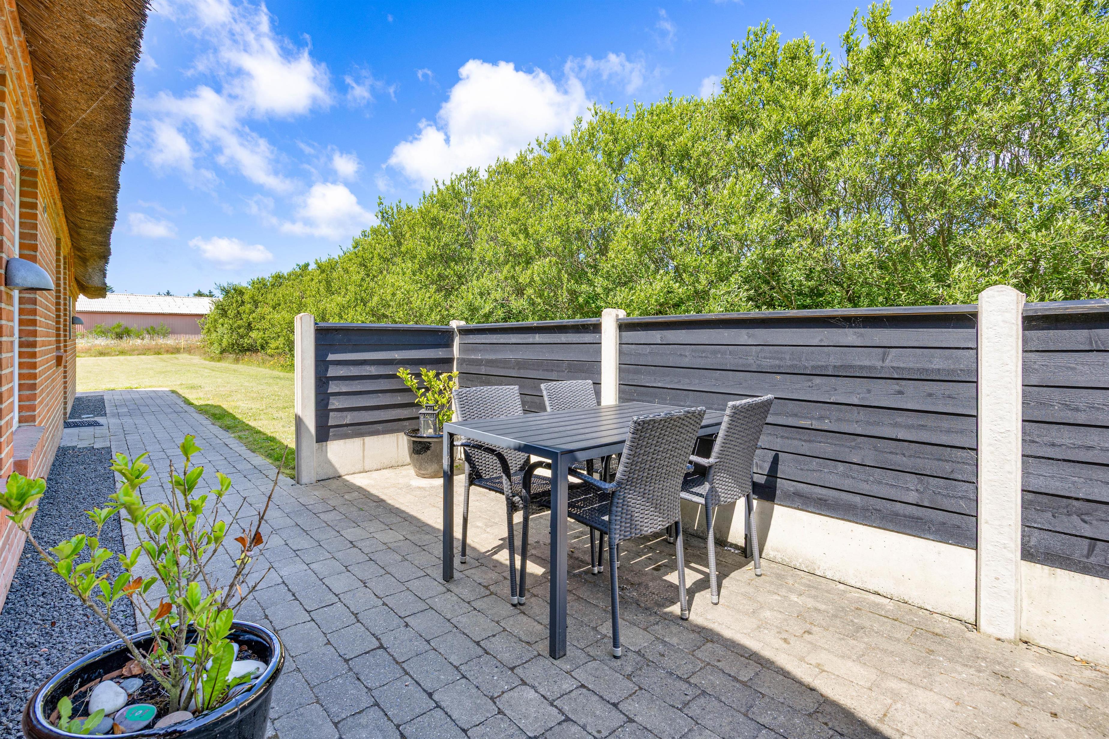 Oveni i alle de skønne faciliteter som huset kan tilbyde indenfor, så kan huset også tilbyde nogle dejlige udearealer. Til børnene er mange forskellige aktiviteter såsom trampolin, gynge og en sandkasse. Her er der også en lukket terrasse hvor I virkelig kan nyde udelivet når ellers vejret tillader det.