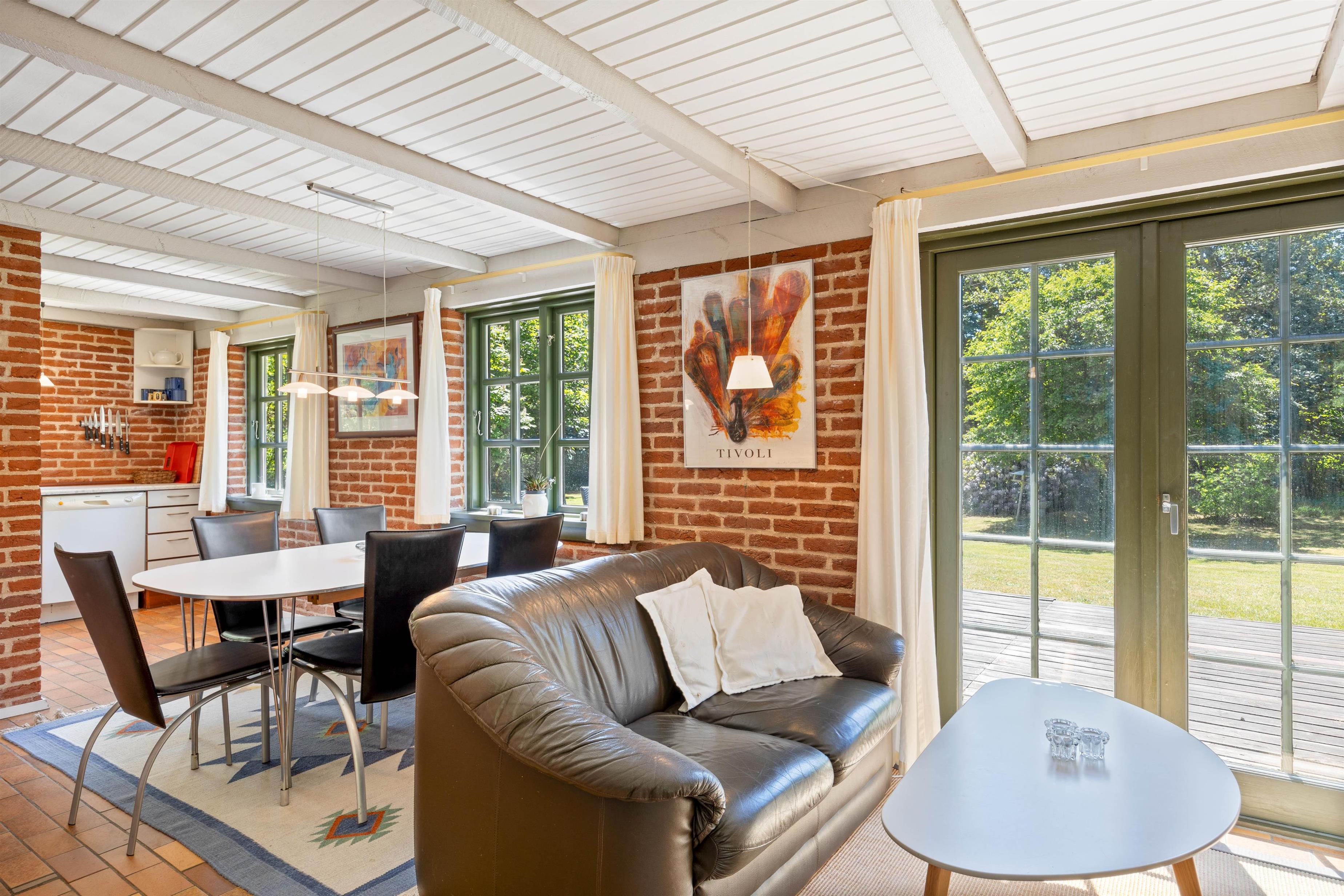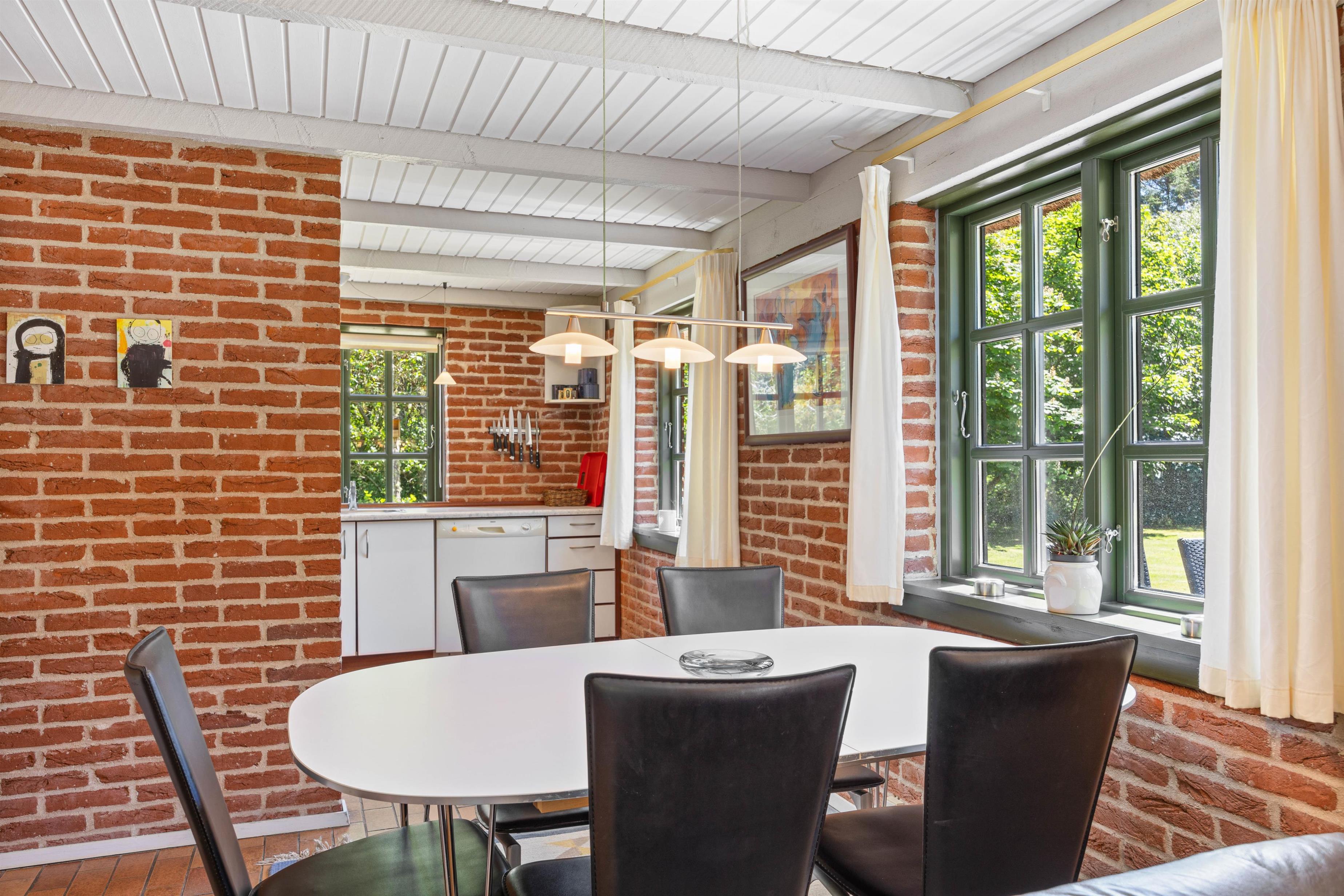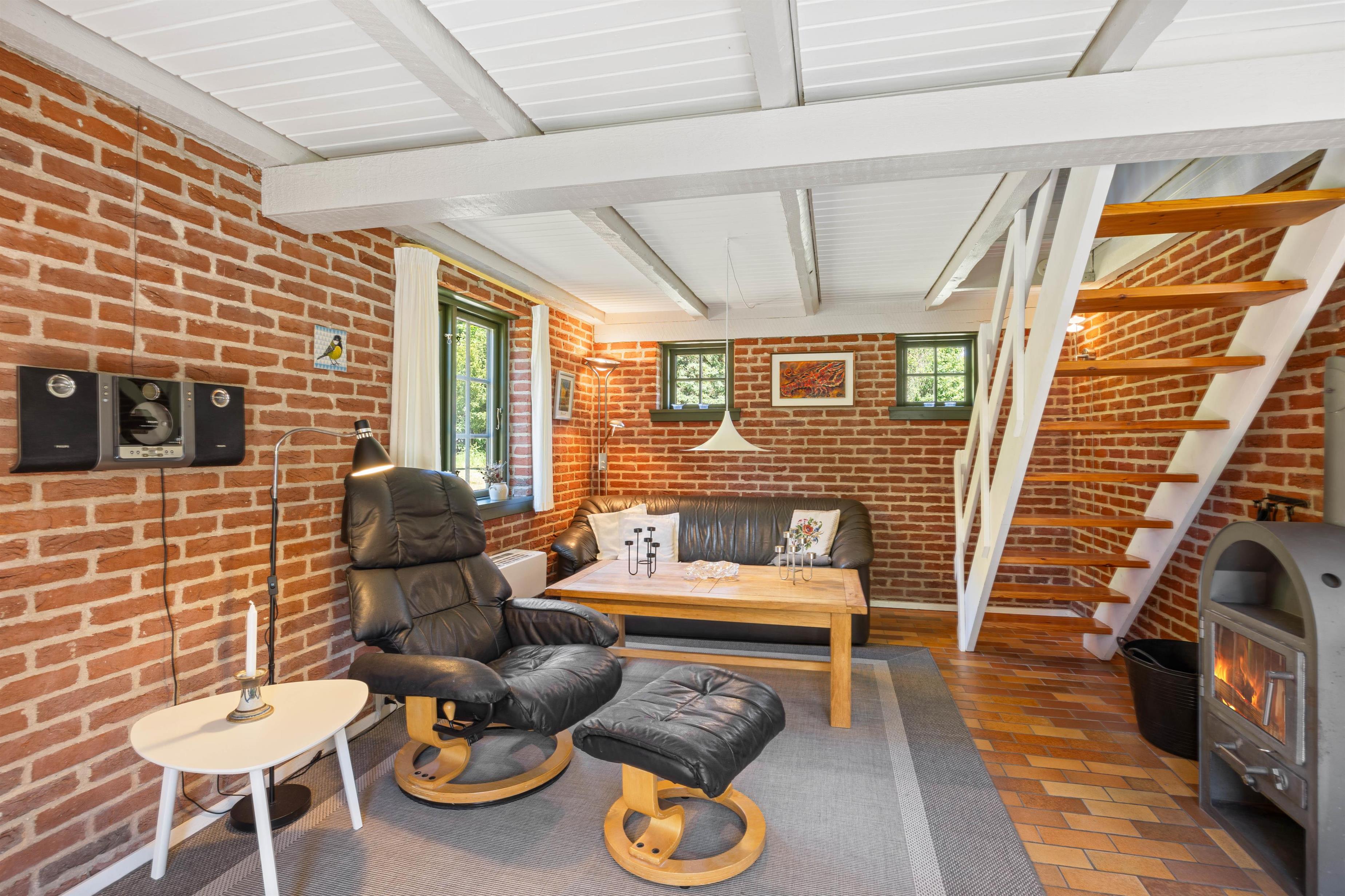 Når I træder ind i sommerhuset, bliver I mødt af typisk dansk interiør. Murstensvæggene skaber en hyggelig sommerhusstemning. Sommerhuset er fordelt i 2 plan med 1 badeværelse, og 1 gæstetoilet. I badeværelset er der en sauna til rådighed, som I rigtig kan blive varmet igennem i.