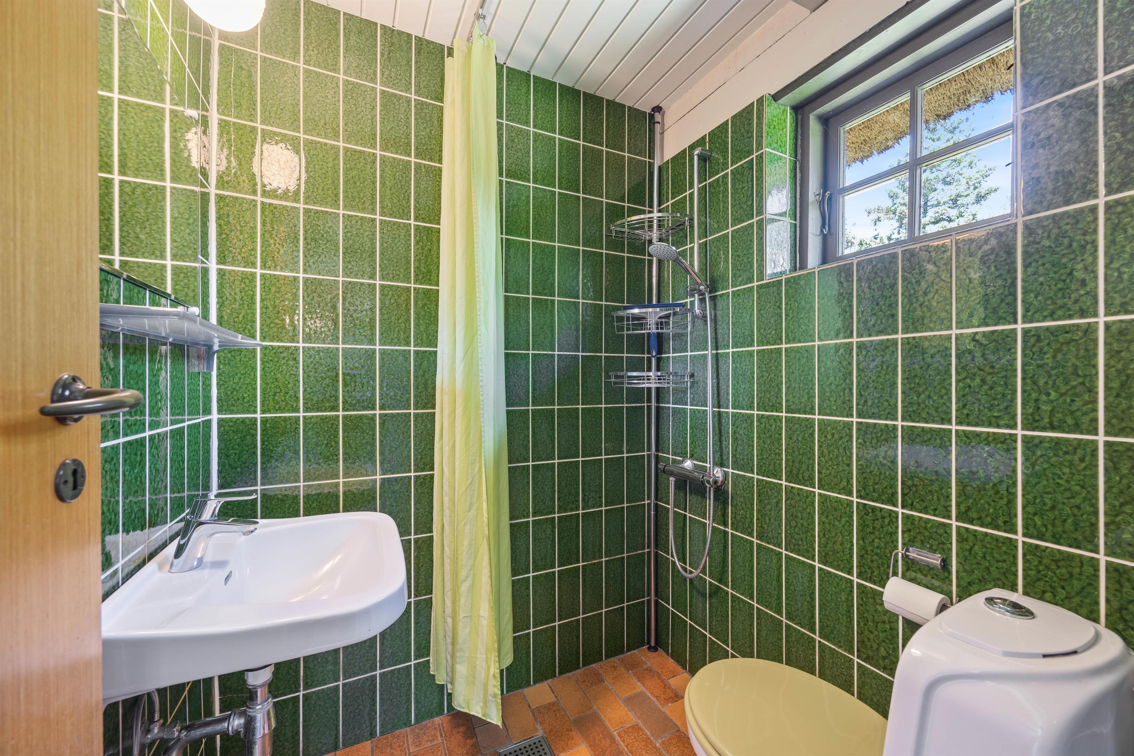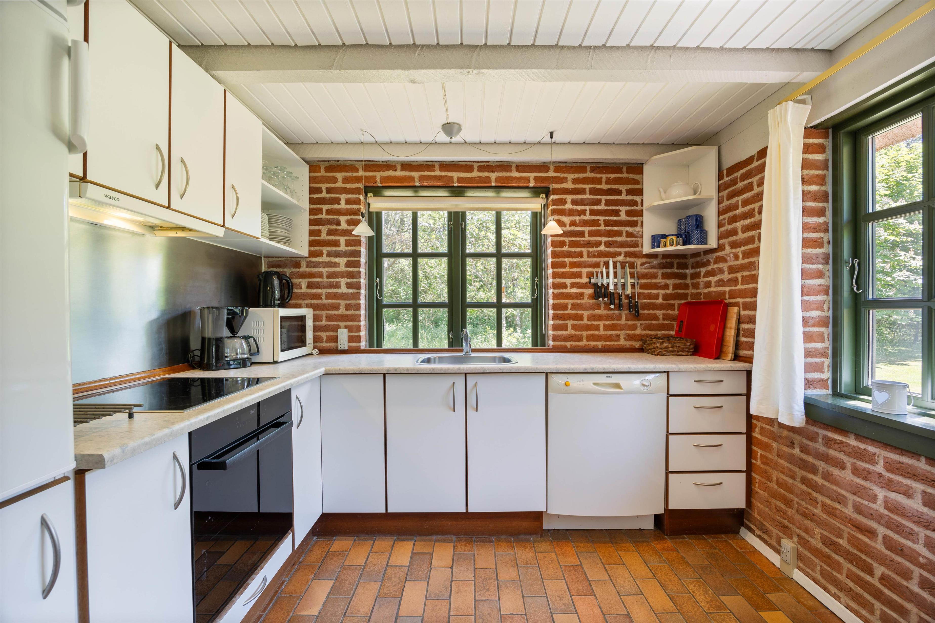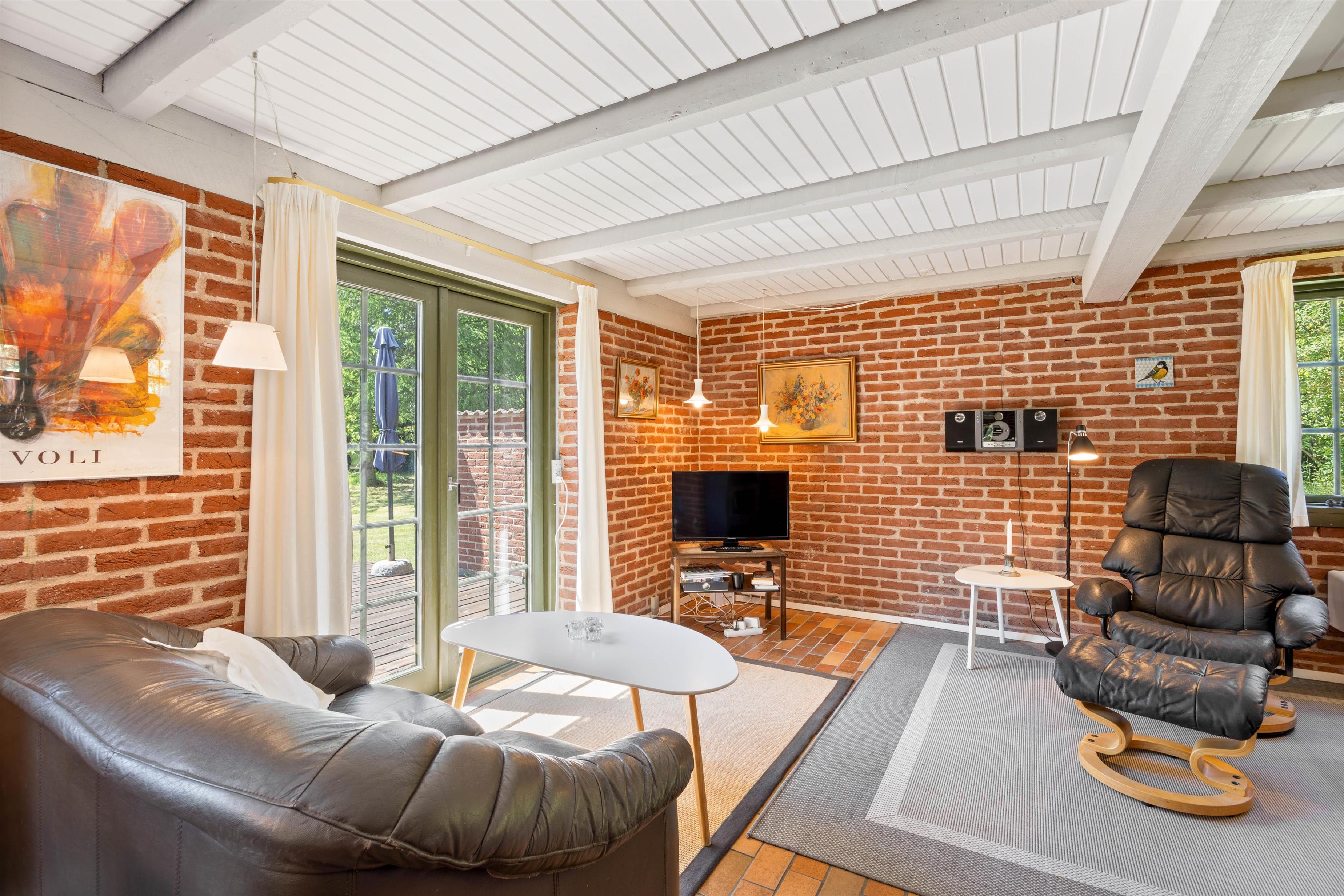 Når I træder ind i sommerhuset, bliver I mødt af typisk dansk interiør. Murstensvæggene skaber en hyggelig sommerhusstemning. Sommerhuset er fordelt i 2 plan med 1 badeværelse, og 1 gæstetoilet. I badeværelset er der en sauna til rådighed, som I rigtig kan blive varmet igennem i.