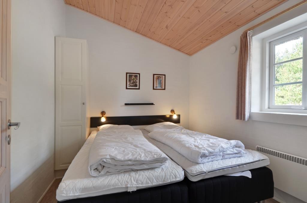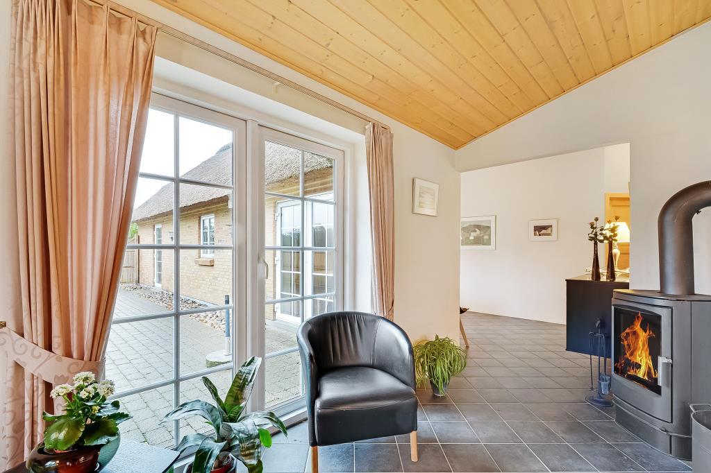 De lyse rum med gulvvarme skaber en behagelig atmosfære året rundt, og brændeovnen i stuen bliver hurtigt et naturligt samlingspunkt efter en dag i naturen eller ved havet.