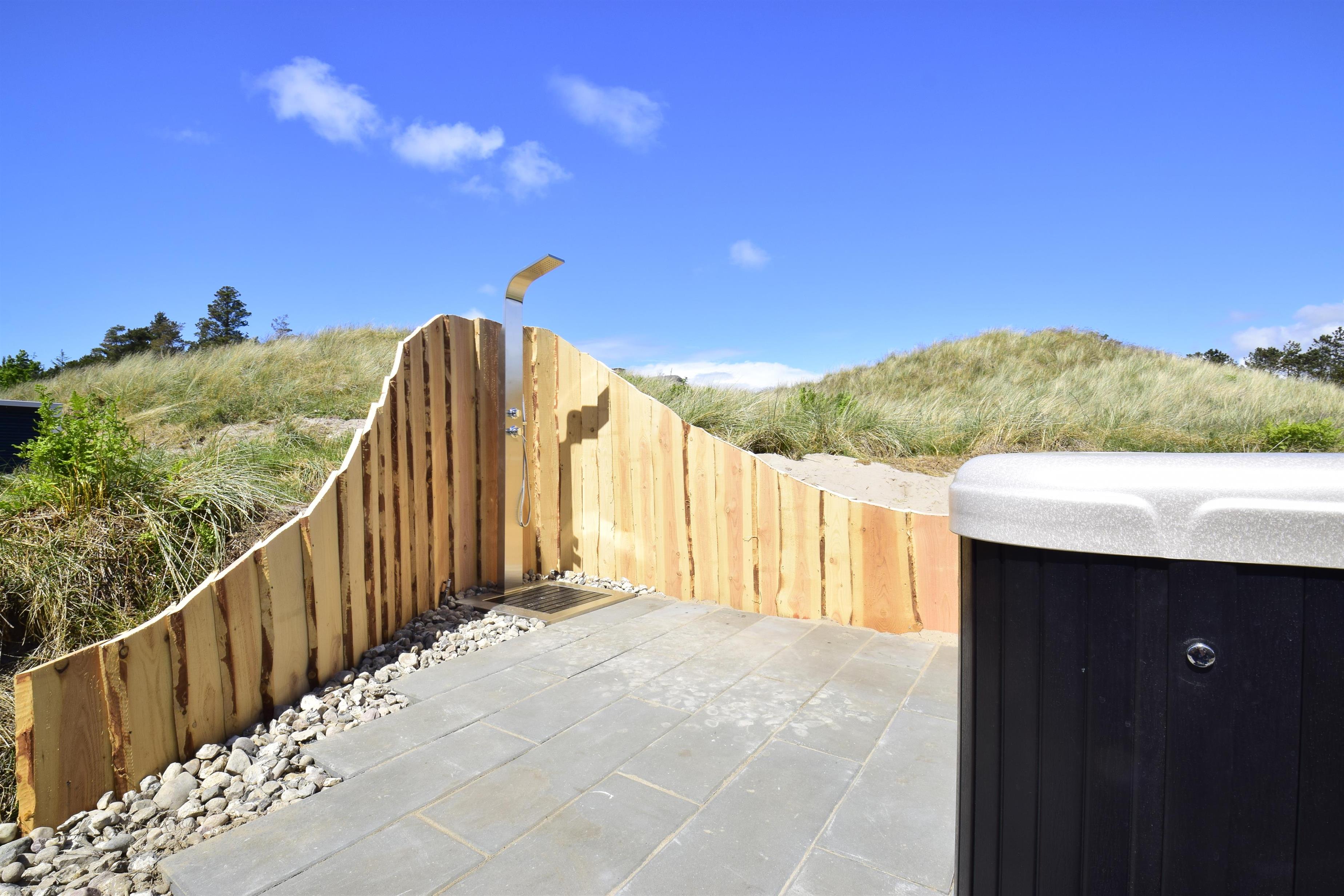 I forbindelse med den nordvestvendte terrasse er der et stort 6 personers ude spa, hvor der er mulighed for at få alle musklerne godt masseret, en helt speciel oplevelse i klar måneskin, eller når stjernerne lyser på himmelen. Spabadet er topisoleret.