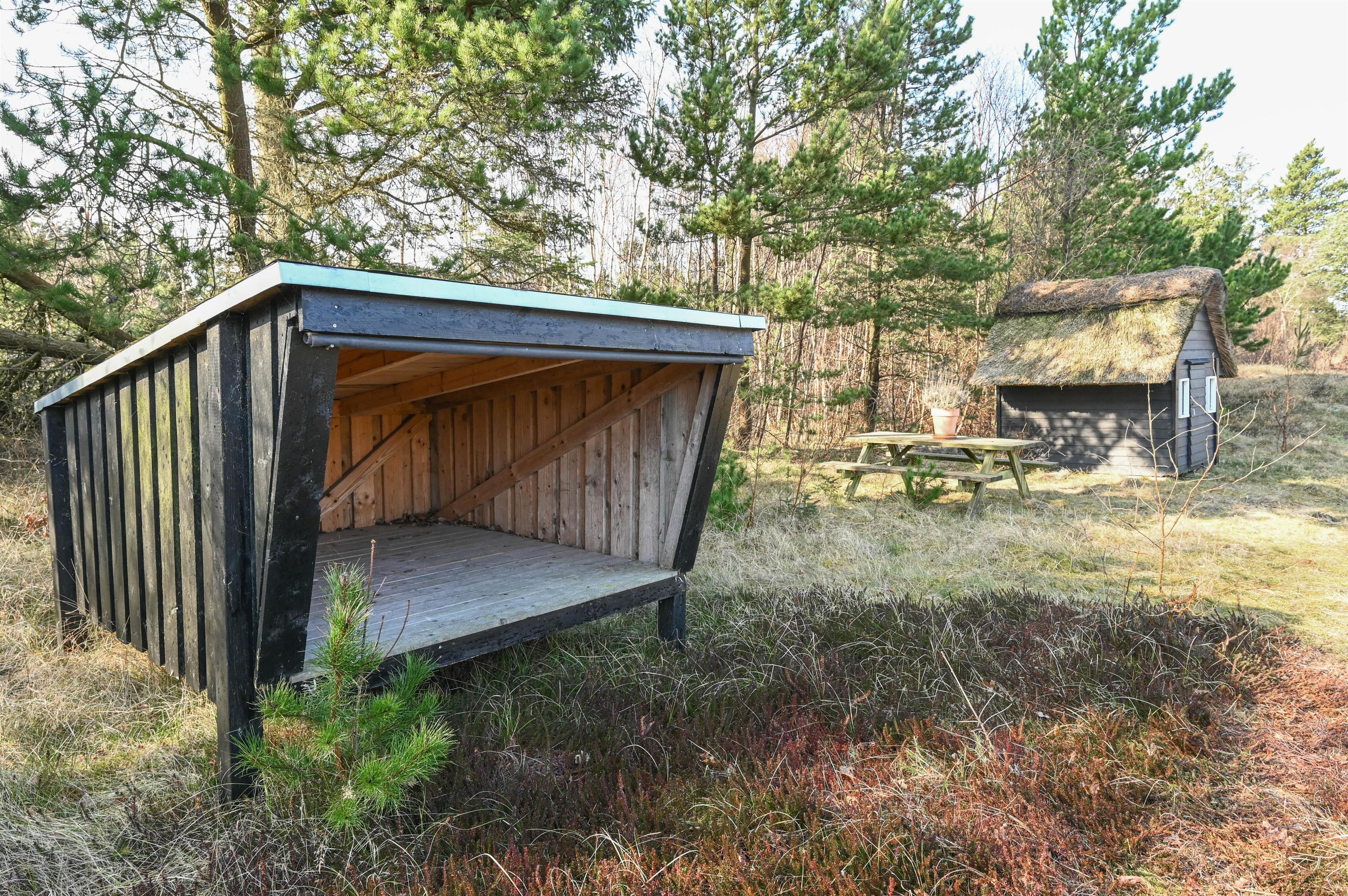Er du til friluftsliv, kan du også prøve en nat i det hyggelige shelter, som ligger på grunden – en oplevelse tæt på naturen.
