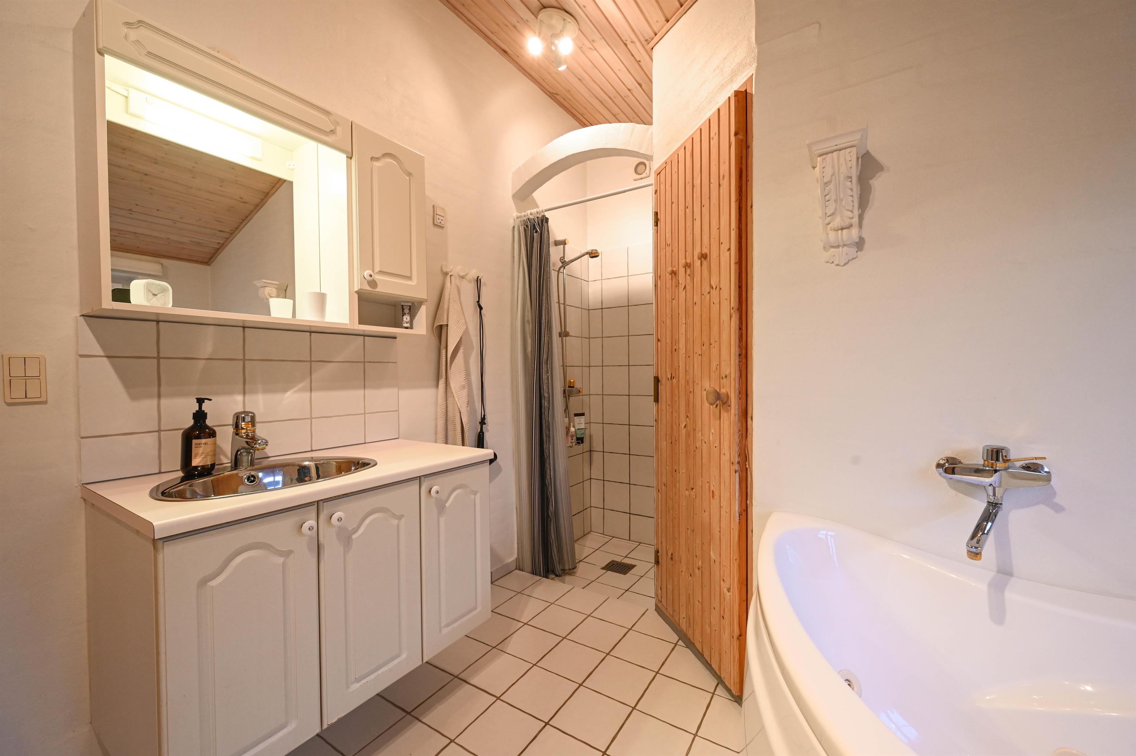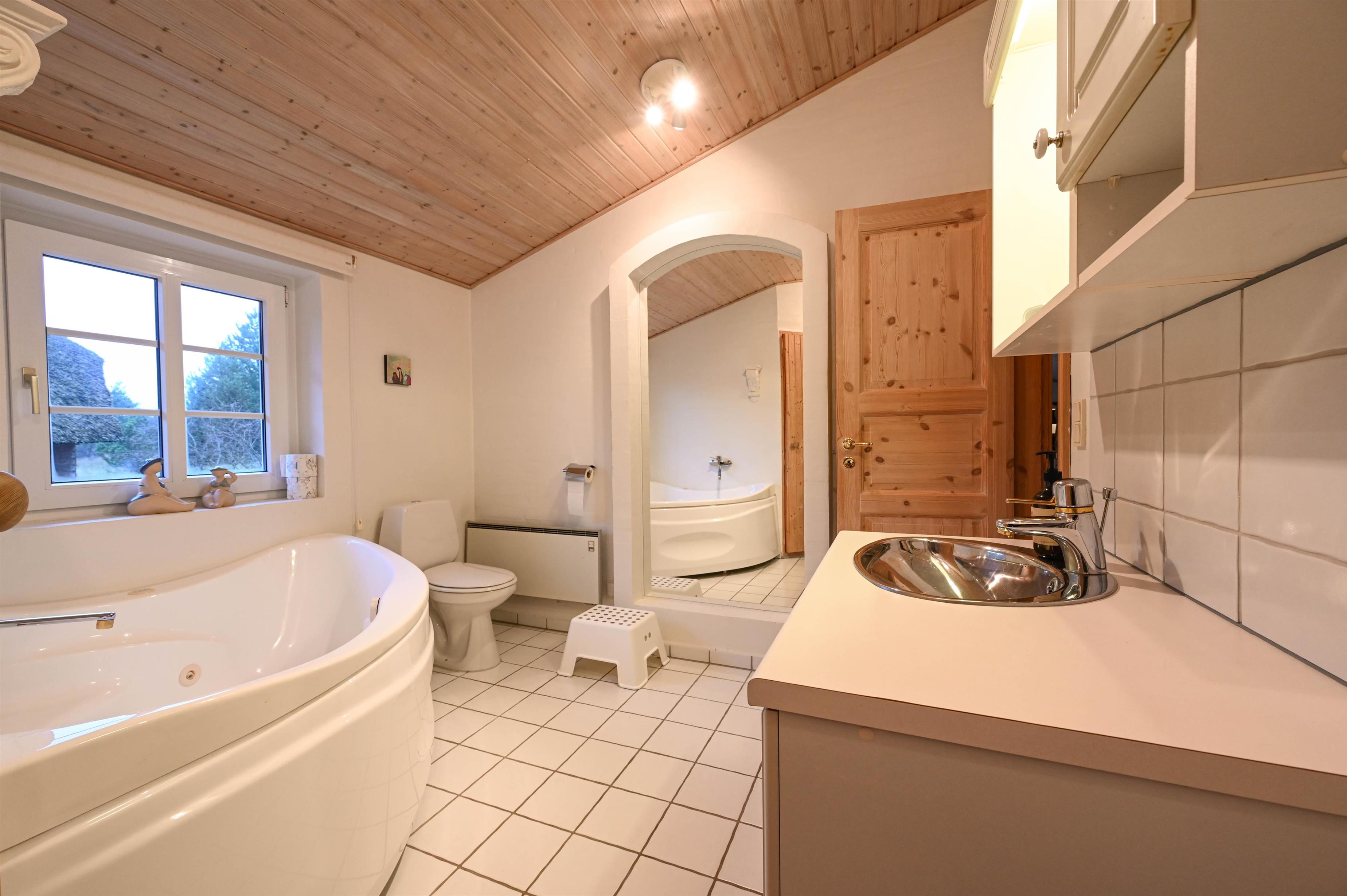 Stort badeværelse med spabad og sauna