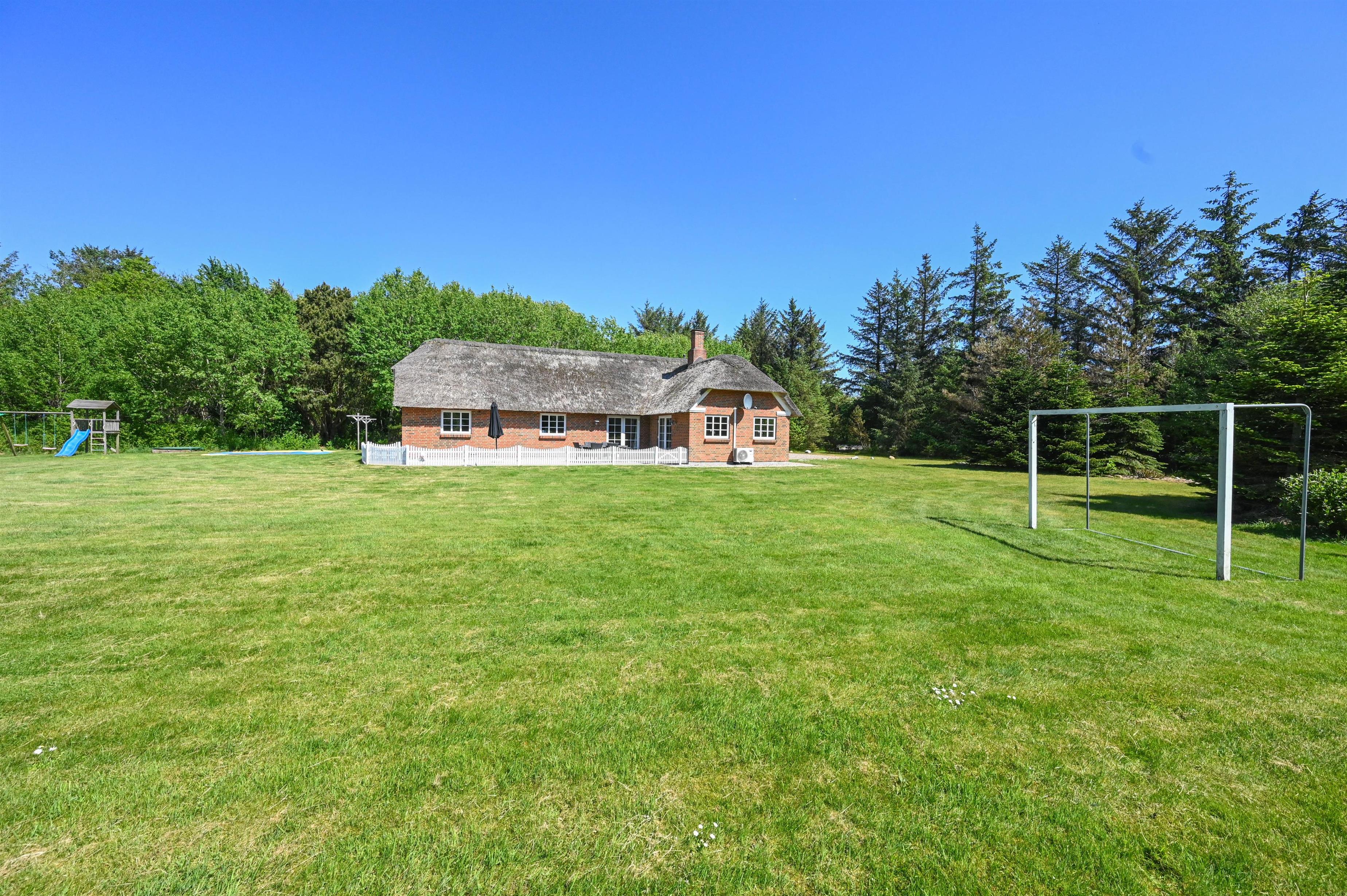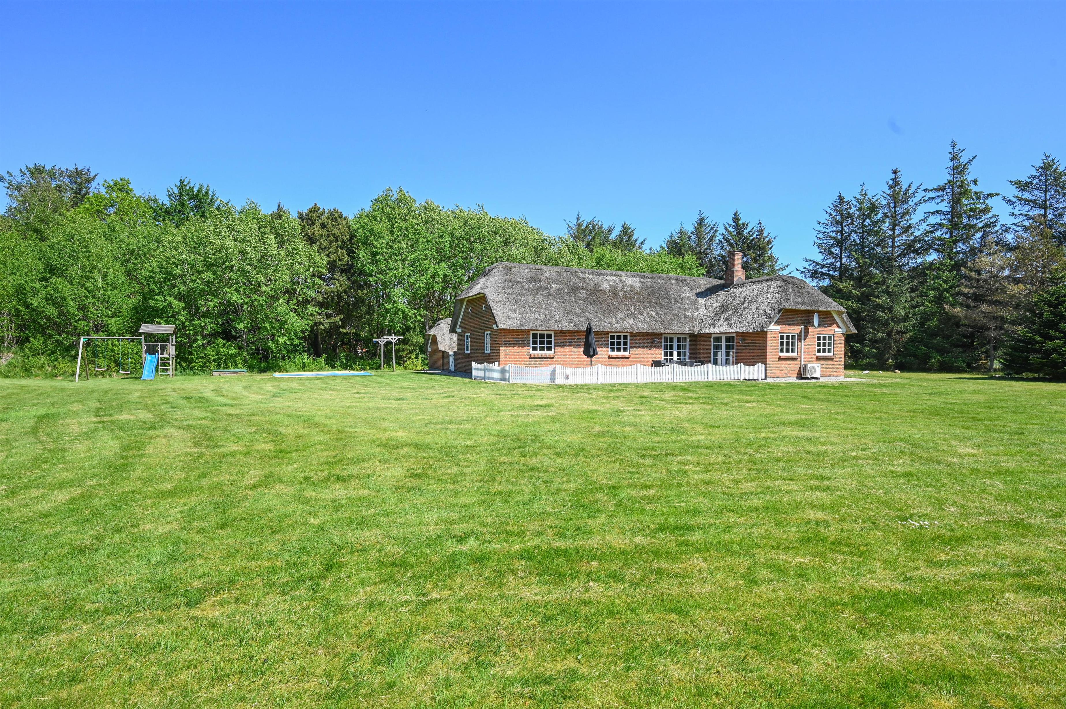 Huset ligger på en 7800 m² stor, delvist plejet naturgrund med træer og bevoksning i yderkanterne, der giver både læ og privatliv. Her kan du nyde freden, høre fuglene synge og mærke vinden fra Vesterhavet – kun 1.300 meter væk.