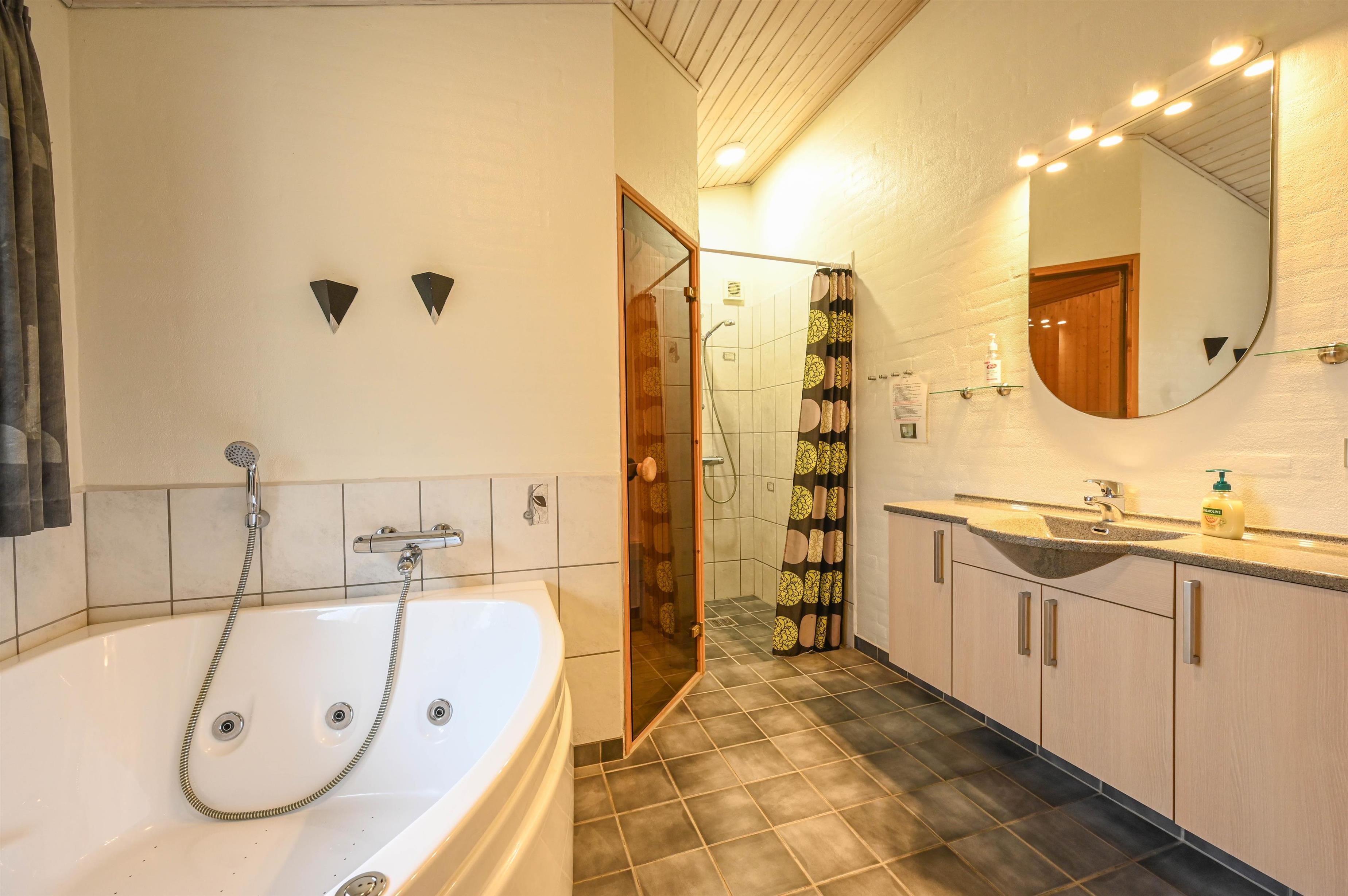 Badeværelse med spa, sauna og bruser
