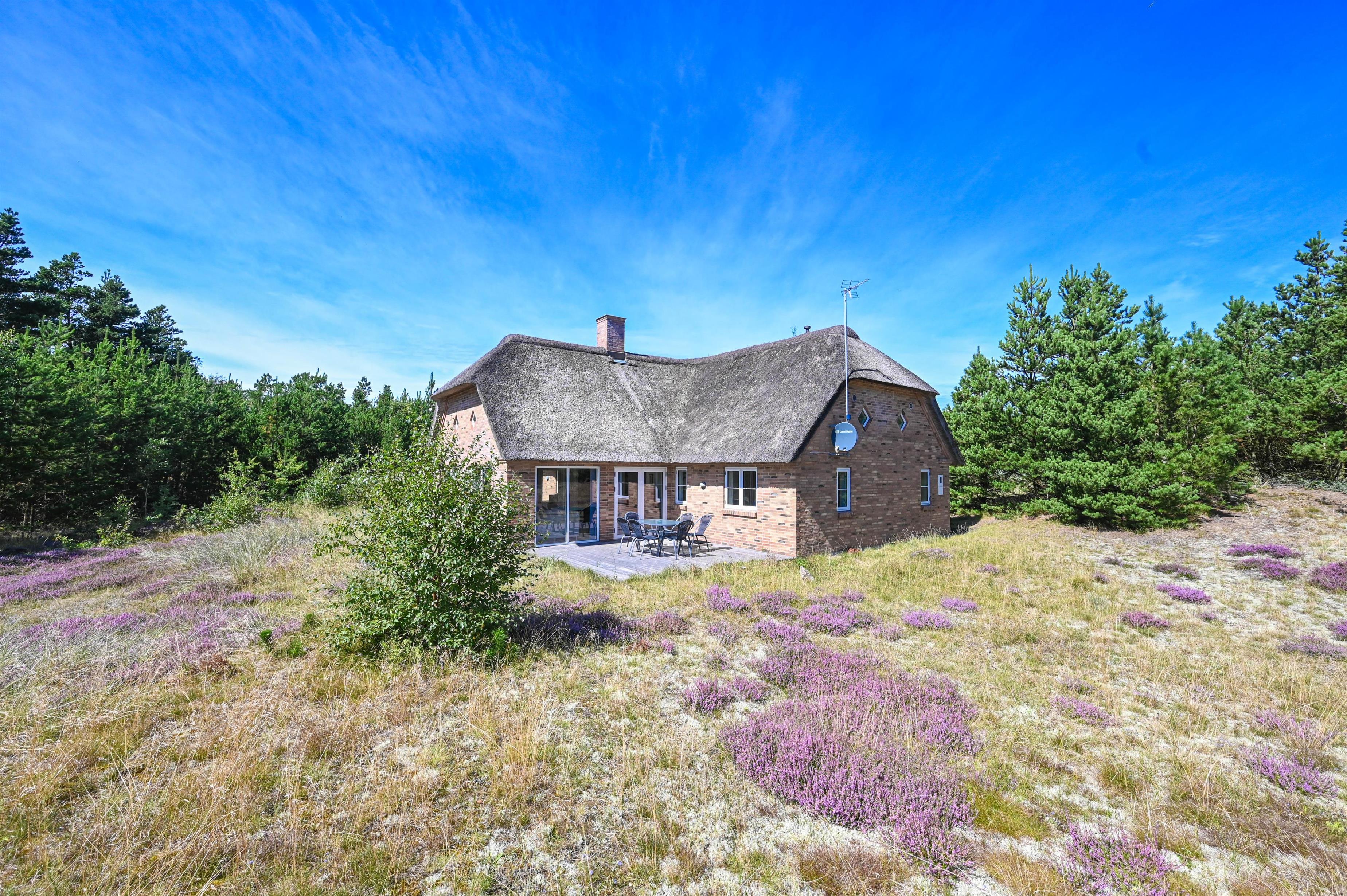 Det klassiske stråtag og de naturlige omgivelser giver huset en autentisk vestjysk atmosfære, mens indretningen og faciliteterne byder på alt, hvad man kan ønske sig til en afslappende og komfortabel ferie.