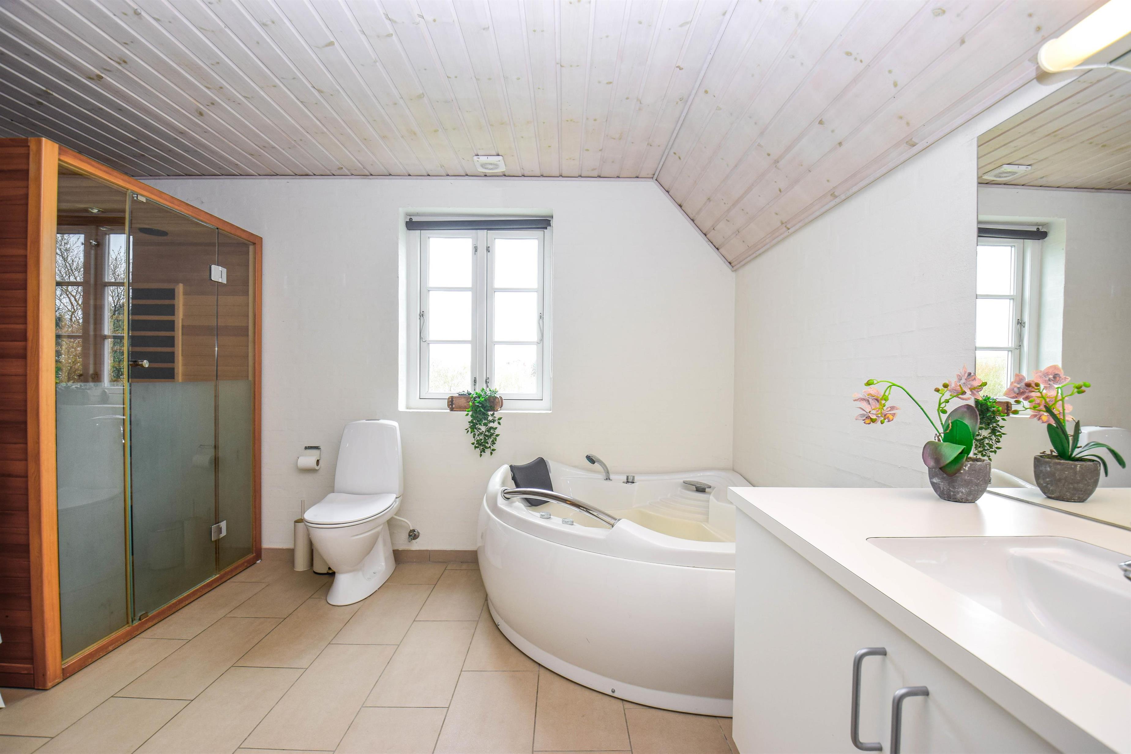 Efter en lang dag ved stranden eller i naturen kan I slappe af i husets spa og sauna, der giver den perfekte afslutning på en dejlig feriedag.