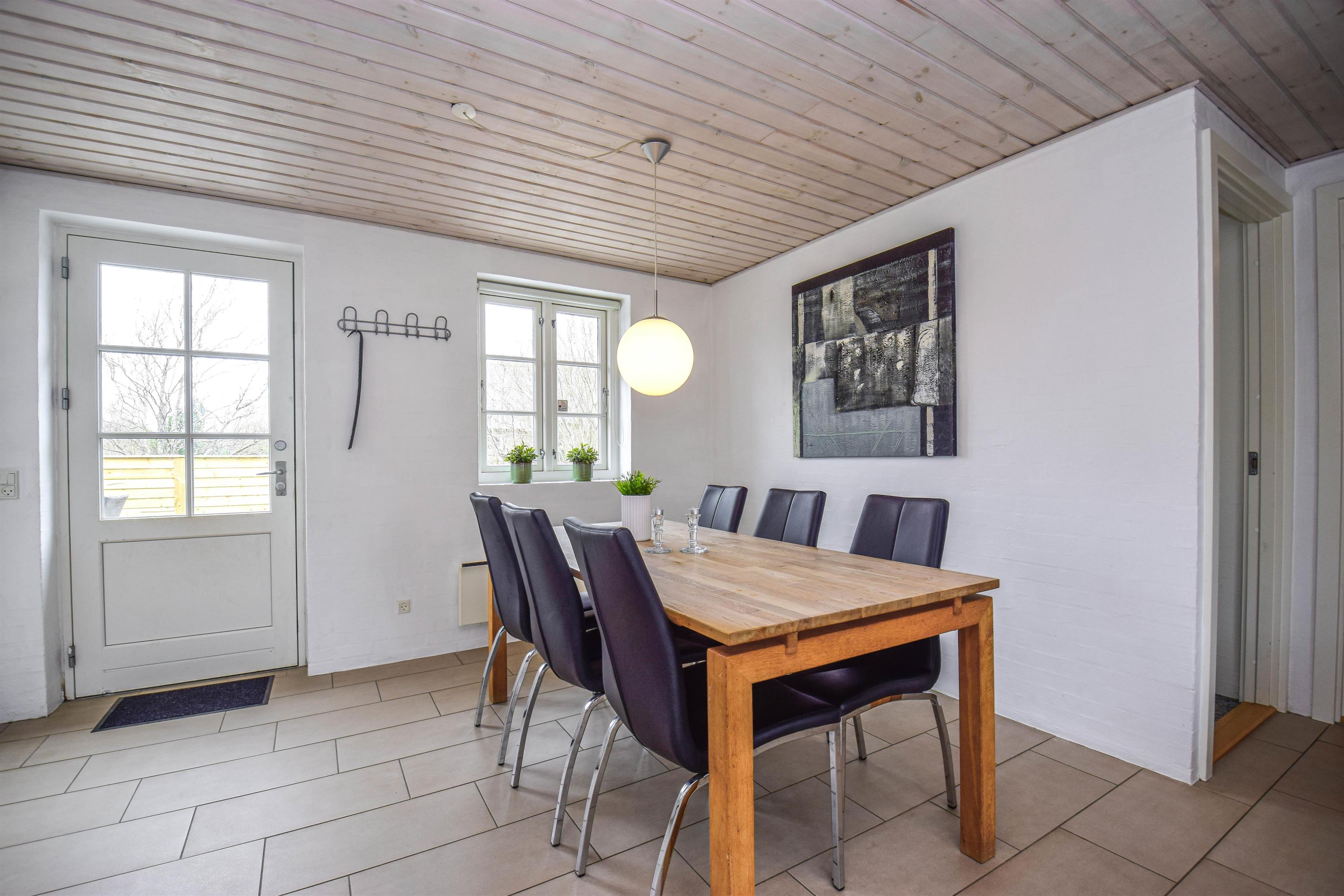 Indenfor er huset lyst, rummeligt og hyggeligt indrettet med moderne faciliteter og en behagelig atmosfære.