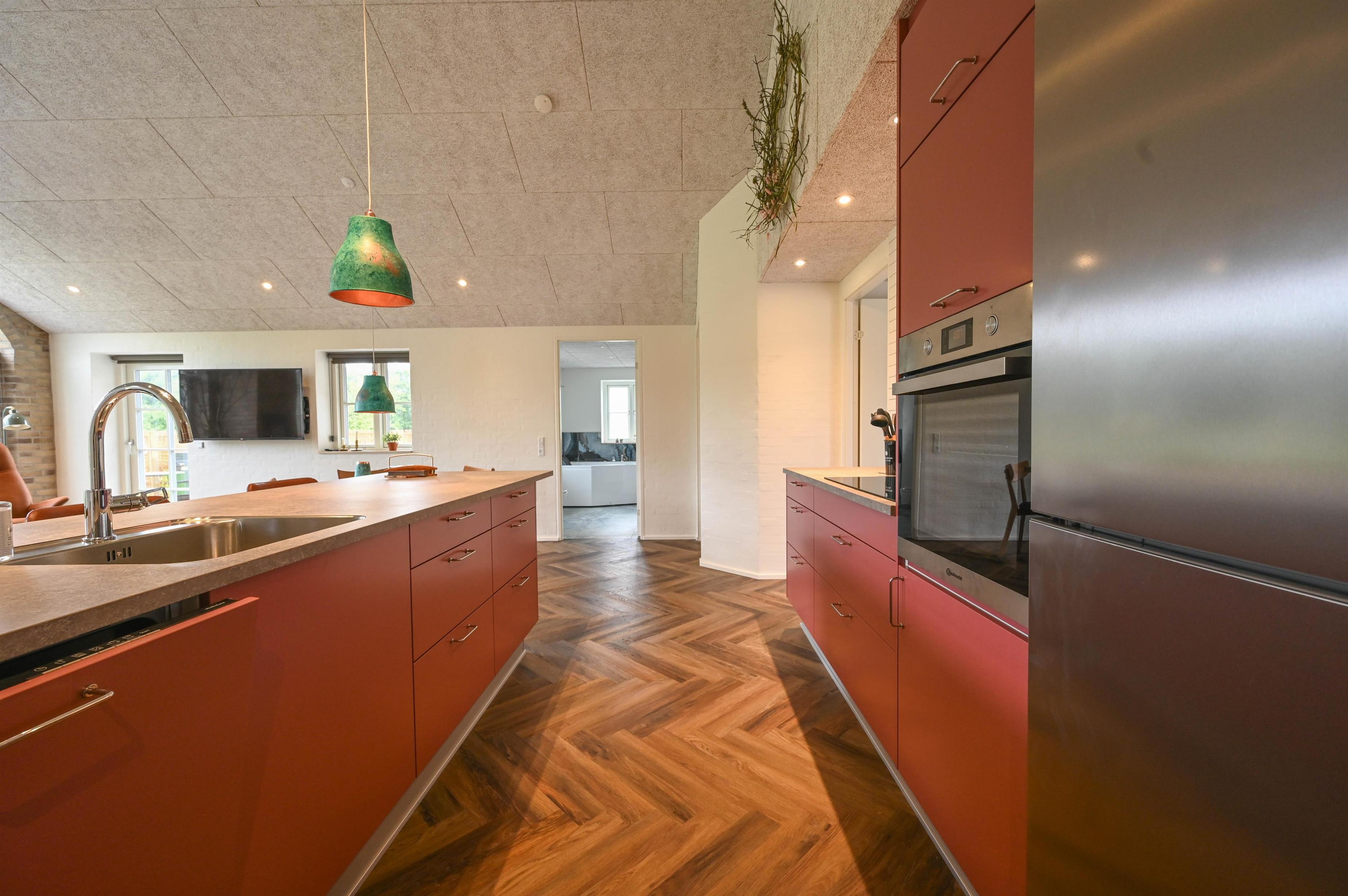 Sommerhuset er nyopført i 2024 og fremstår overalt lyst og indbydende. Indretningen er moderne og hyggelig, og vil uden tvivl kunne danne ramme om en skøn ferie ved Vesterhavet. Her er køkken i åben forbindelse til lys stue, som er samlingspunktet til gode stunder med familien. I stuen er der brændeovn, som skaber ekstra hygge til de mørke timer. Skal der konkurreres lidt er det store aktivitetsrum med poolbord en oplagt mulighed for sjove og spændende timer.