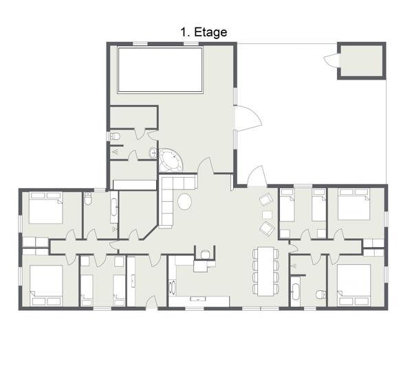 Et velindrettet og rummeligt poolhus med plads til to familier, moderne faciliteter og masser af muligheder for hygge og afslapning – omgivet af vestjysk natur, hav, skov og klitter.