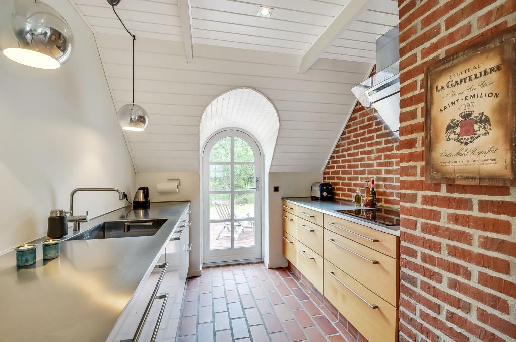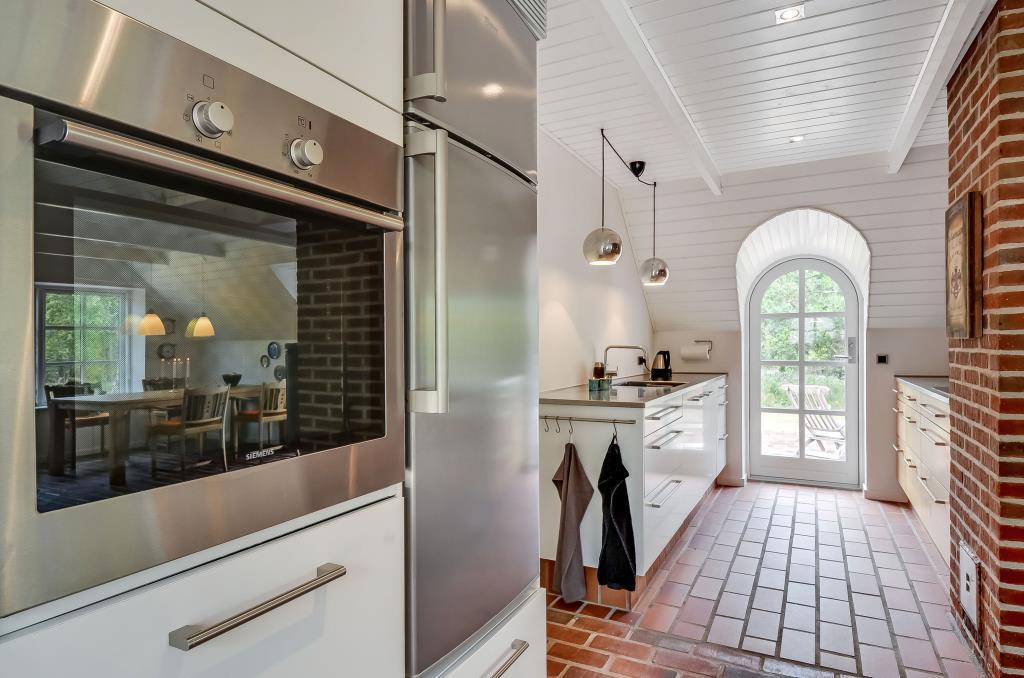 Det lyse køkken ligger i åben forbindelse med stuen og er udstyret med alt, hvad du skal bruge til madlavning i ferien.