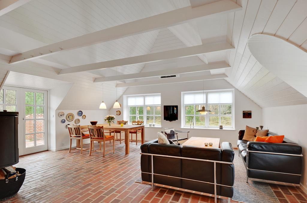 Her er der tænkt på både komfort og atmosfære – huset fremstår lyst, indbydende og moderne, men stadig med den hyggelige sommerhusstemning, der gør ferien helt særlig.