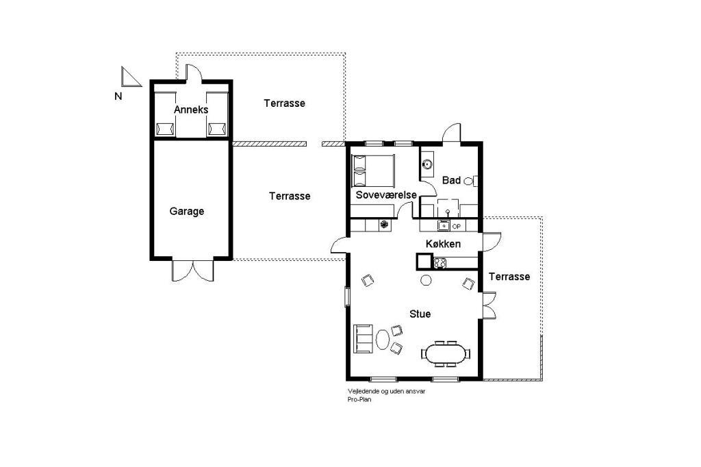 Anneks i forlængelse af garagen med 2 gode senge – ideelt til teenagere eller gæster.