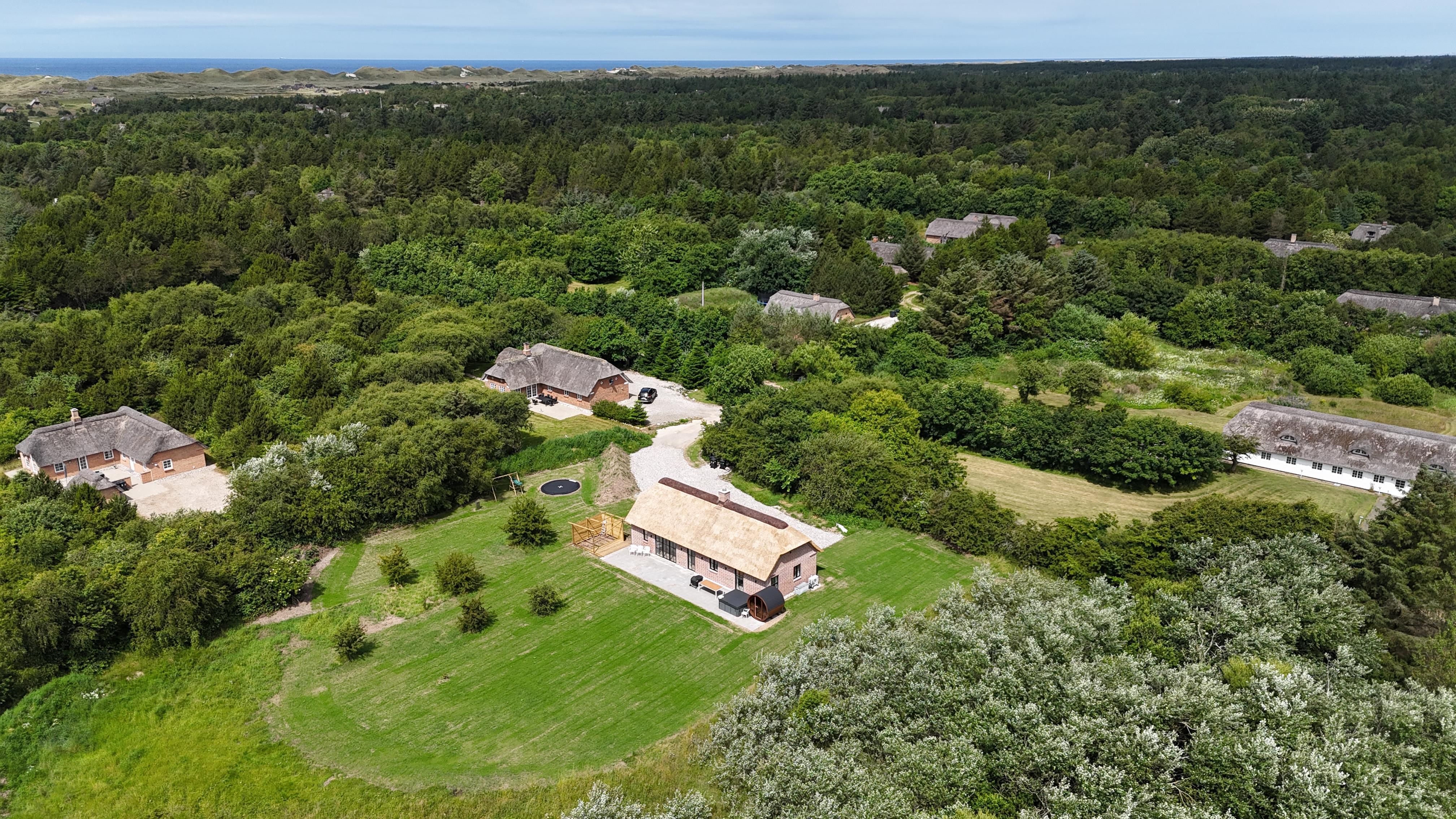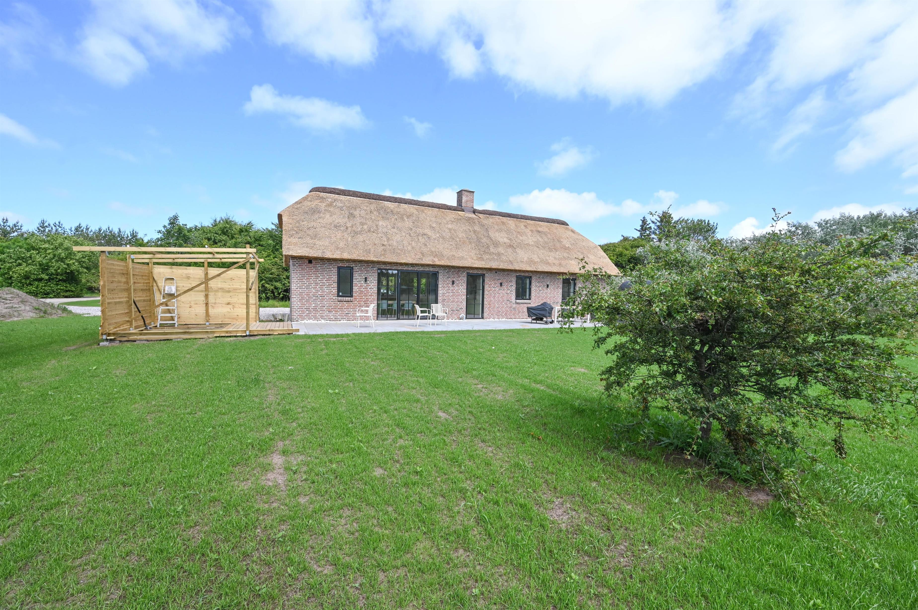 På en smuk, delvis plejet grund på hele 6.029 m² – omgivet af natur, himmel og havluft – finder du dette helt nye feriehus, opført i autentisk vestjysk stil i foråret 2025.