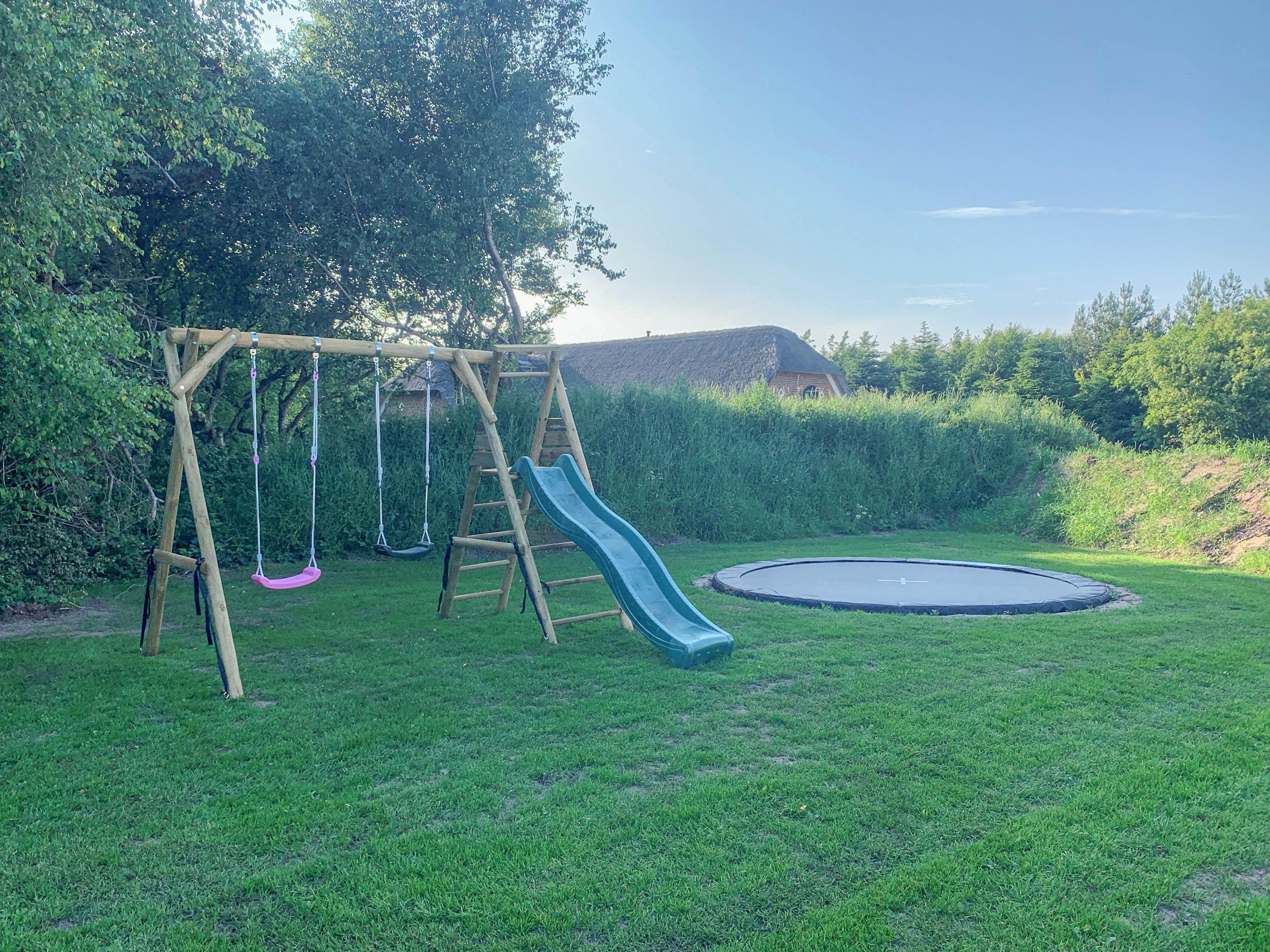 Børnene vil elske den store græsplæne og trampolinen, der indbyder til leg og aktivitet – mens de voksne kan nyde udsigten, naturen og den afslappede atmosfære.