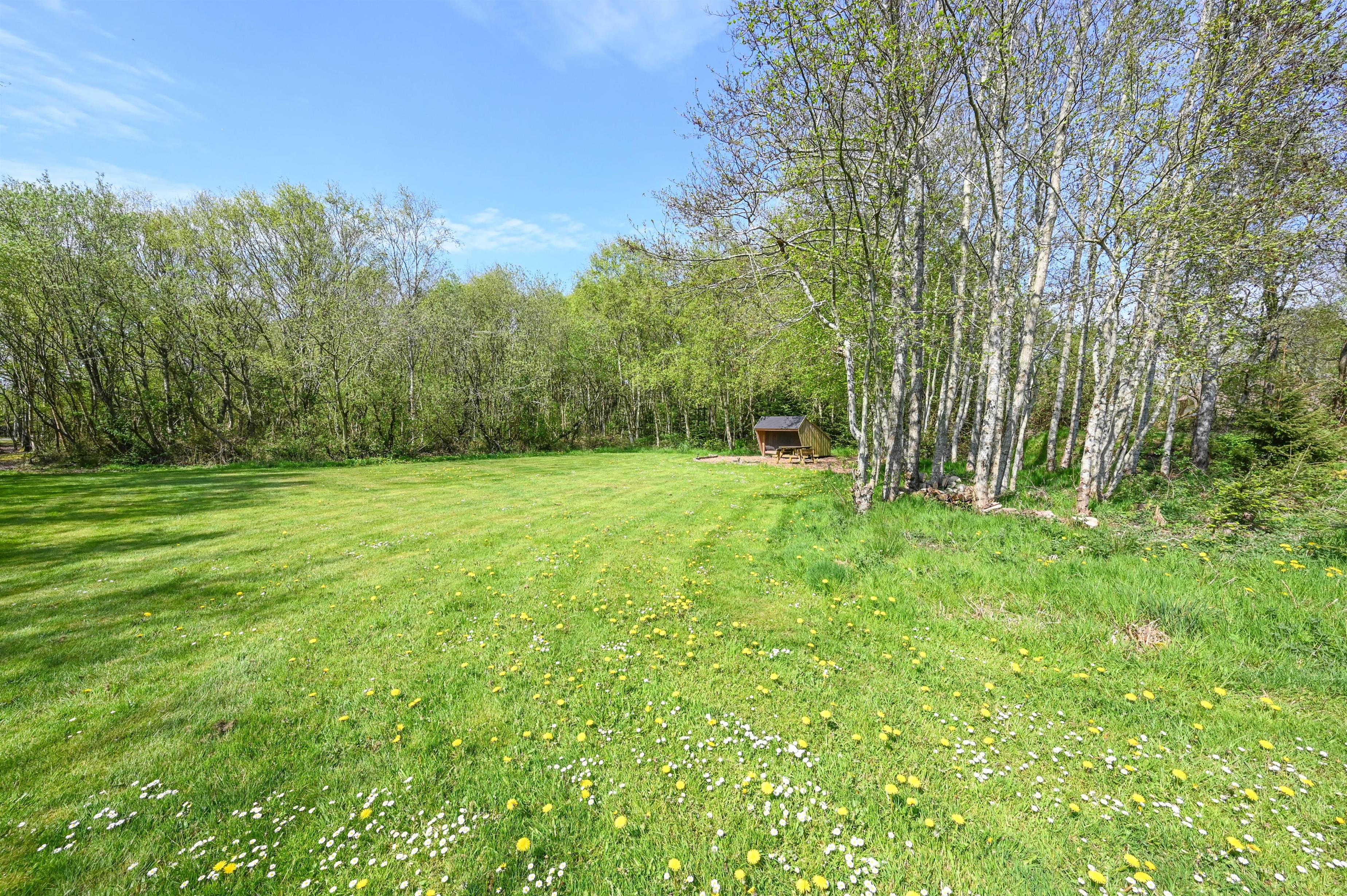 Den afskærmede sydvendte terrasse giver gode muligheder for at nyde solen dagen igennem, mens aftenerne kan tilbringes omkring bålet ved shelteren og bålpladsen – et fantastisk sted at opleve naturen og den vestjyske stjernehimmel.