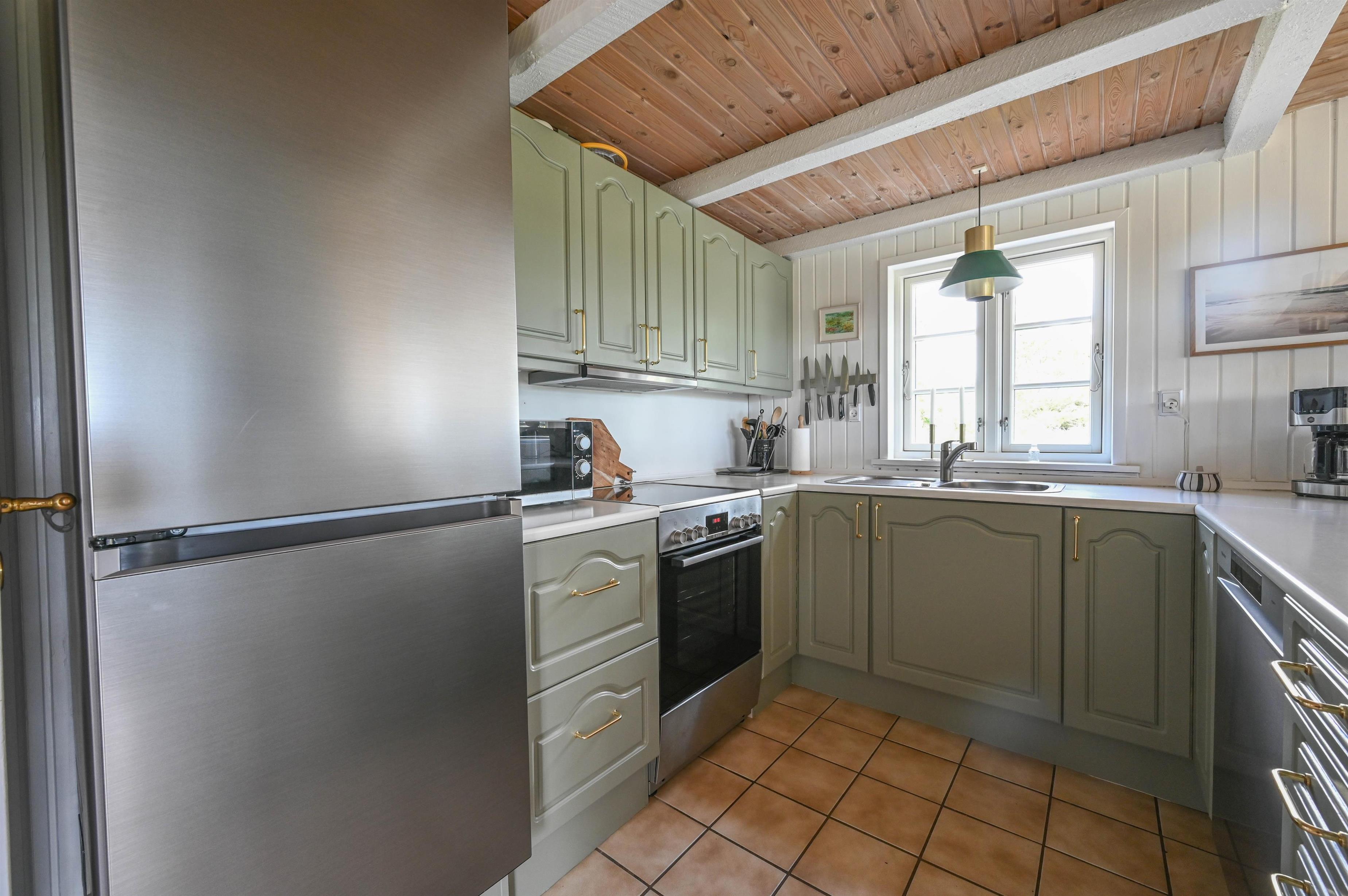 Indenfor er stemningen rolig og afslappet – med lyse rum, gode møbler og en klassisk feriehusaura.