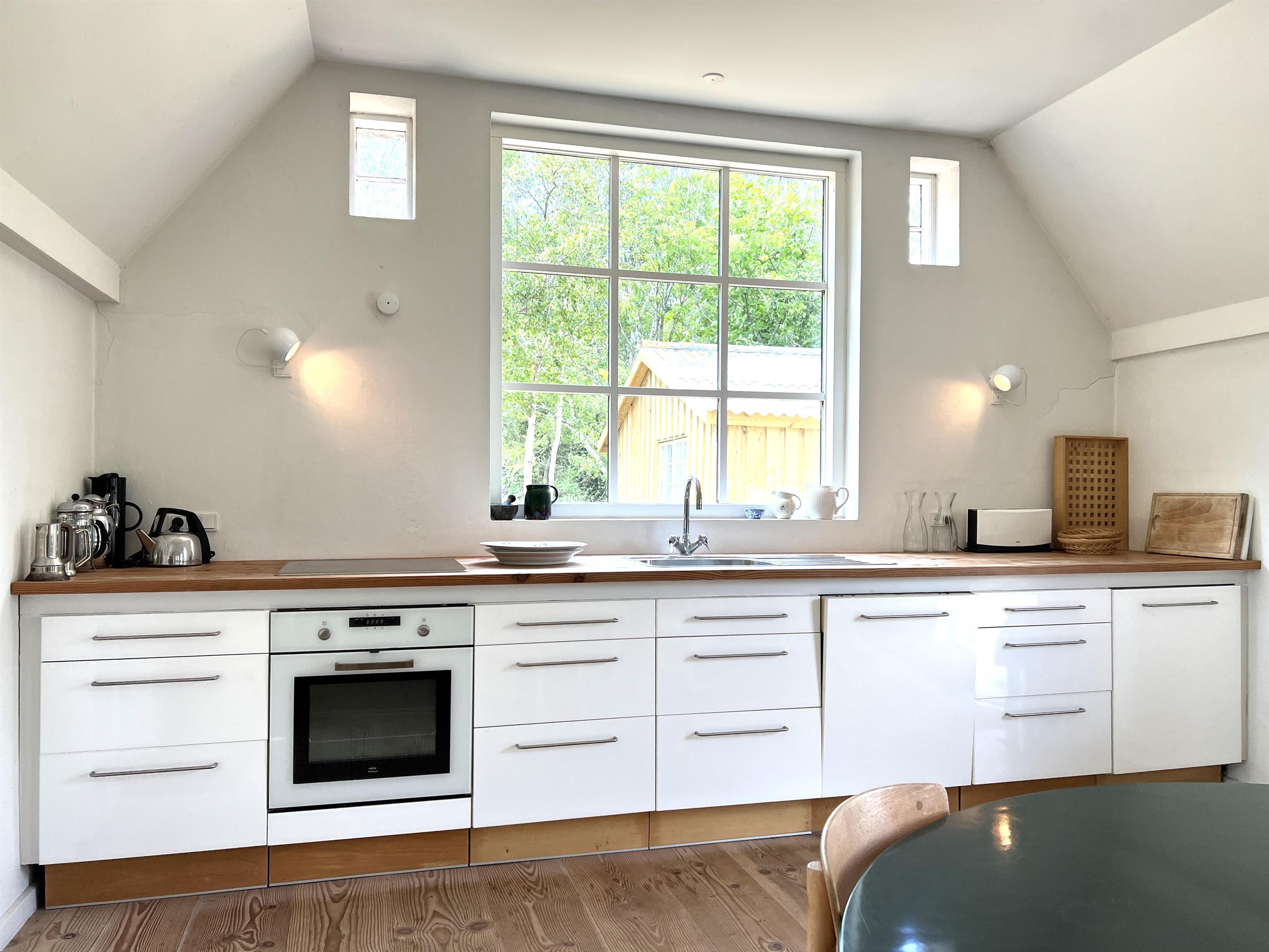 Fantastisk smukt og nænsomt renoveret husmandssted, hvor indretningsarkitekten har ydet sit ypperste. Beliggenheden er i naturskønne omgivelser med udsigt til grønne skove og marker og i kort afstand til øens nok bedste badestrand, Kongestranden. På Nissebakkevej 1 indfinder den særlige Læsø-ro sig i samme øjeblik, man ankommer til stedet. Her er der god plads til familien både inde og ude, og man er helt alene på den meget store, private naturgrund. Selve huset er særdeles charmerende og smagfuldt indrettet med mange smukke detaljer. Stort, moderne køkken i åben forbindelse med spisestue og dagligstue og indbygget pejs ved sofaafdeling. I den anden fløj af huset er der tre store soveværelser, to med dobbeltsenge og et med enkeltseng. Det ene soveværelse er i åben forbindelse med den lange gang, som er forsynet med skabe med rigtig god plads. Lækkert, moderne badeværelse og vaskemaskine og tørretumbler. Mange udgangsdøre fra værelser, gang, badeværelse og køkken til den store have. Udenfor er der gårdhave med havemøbler og solsenge og udsigt over marker med rigt dyreliv. For enden af den smukke snoede gamle markvej finder man Kongestranden, og man kan let cykle til Vesterø Havns hyggelige havnemiljø med fiskehandler, shopping, restauranter og dagligvarebutik.