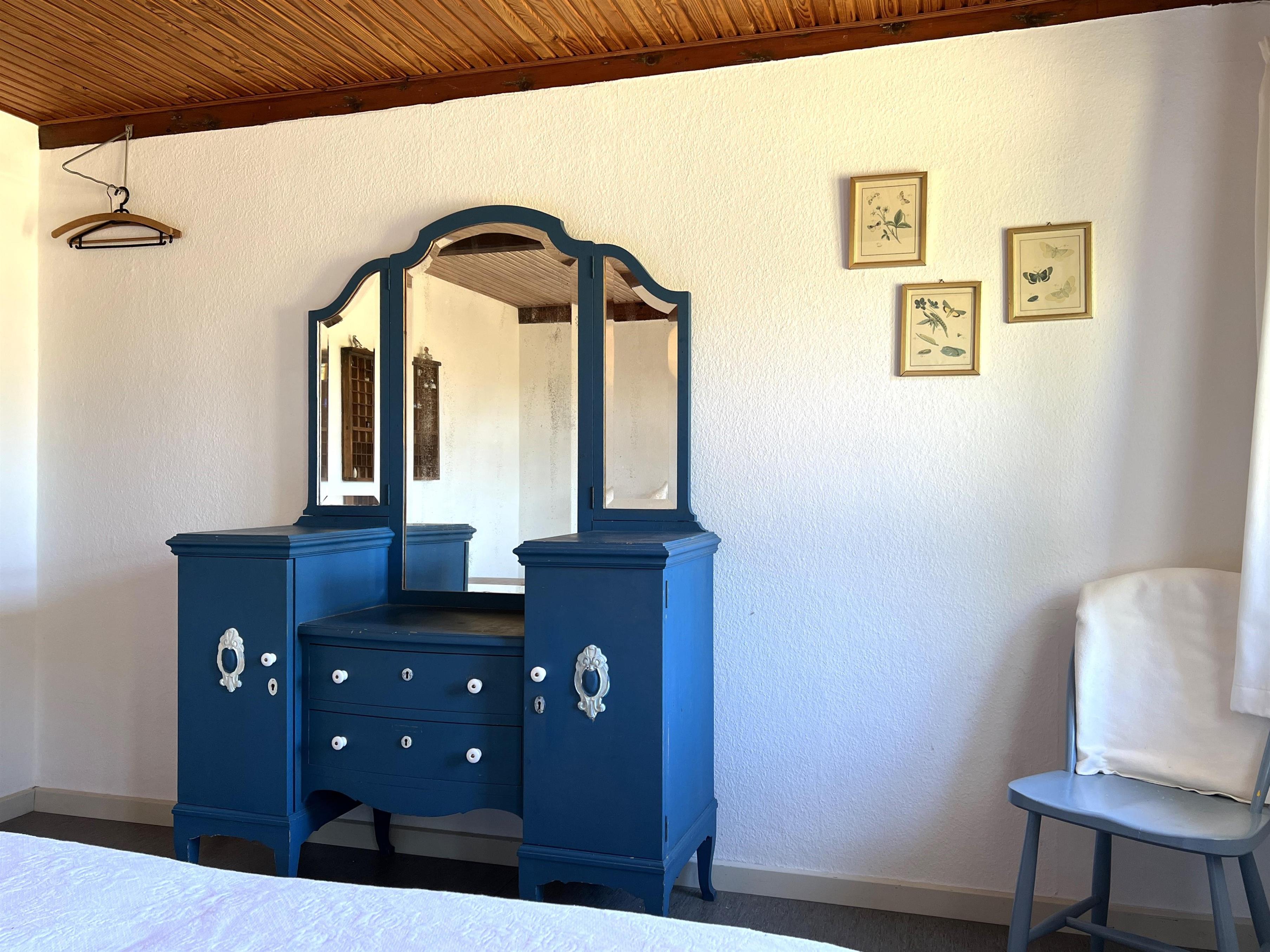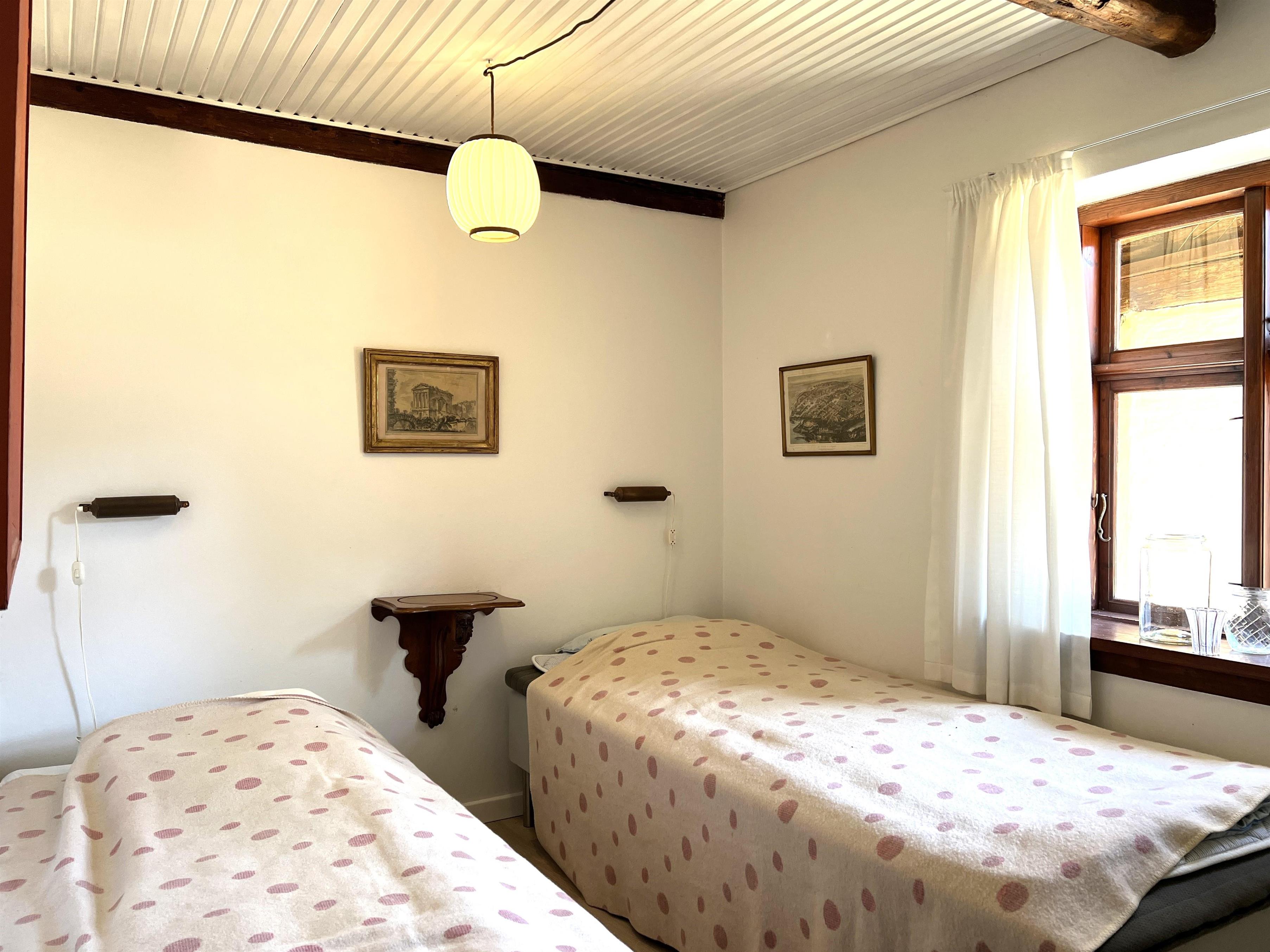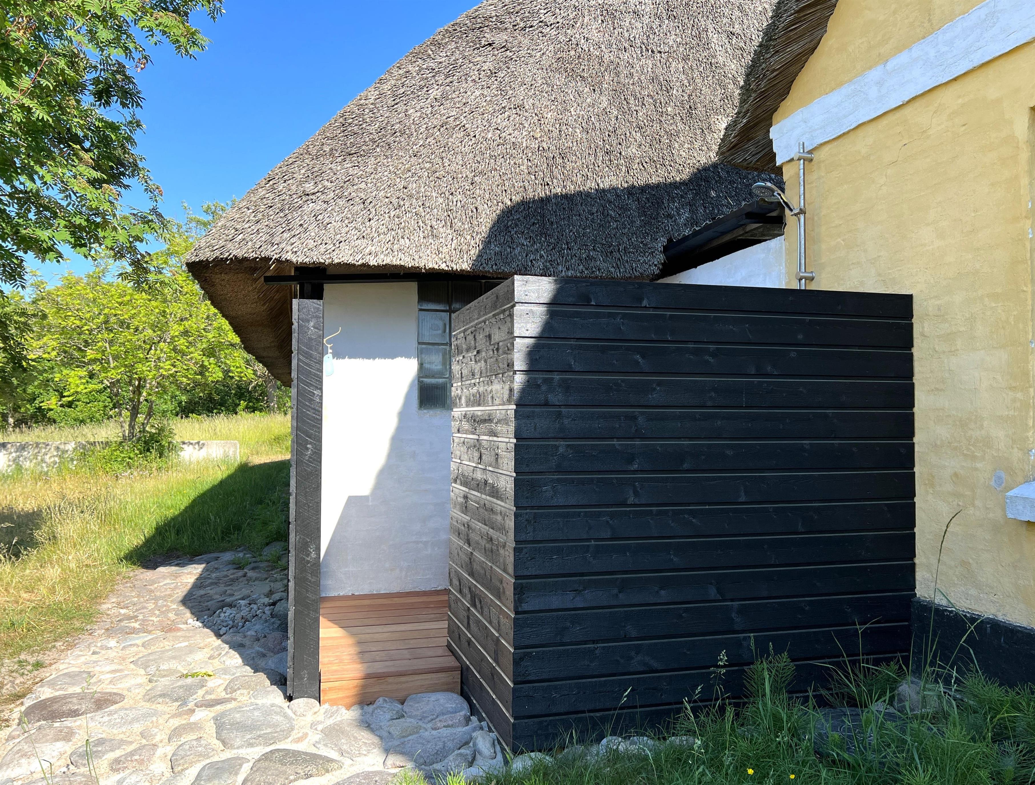 Denne smukke, gamle Læsøgård er en af Læsøs ældste, og her er mulighed for en unik ferieoplevelse til den store familie, der gerne vil bo i et fredeligt, naturskønt område. Gården ligger højt placeret på den store grund, og det giver en fantastisk smuk udsigt ud over de store lysåbne arealer, hvor man kan nyde solnedgangen over Kattegat. Den snoede gamle markvej går ned til Søndre Kirke og Kongestranden, øens nok bedste badestrand. Gården, "Rimmen" er nænsomt renoveret med respekt for stil og stemning, og man vil fx møde autentiske loftsbjælker fra skibene fra de mange strandinger rundt Læsø. Fliserne på badeværelserne, som var med, da gården blev overtaget i 1965 er intakte. Her på gården er man kun ledsaget af den særlige Læsø-ro og den smukke udsigt til søen, markerne og naturen. Det store hovedhus har fire soveværelser, hvoraf tre er med nye dobbeltsenge og et med to enkeltsenge. Ekstra, femte soveværelse med to enkeltsenge, så den store familie kan brede sig. Charmerende køkken med "det gamle" spisebord og en imponerende stor stue med spisebord og flere hyggeafdelinger med sofaer, lænestole og TV. I forlængelse af værelsesfløjen er der udgang til udebruser, hvor man kan nyde udsigten over den store have. Der er et fint rum med vaskemaskine, tørretumbler, ekstra køleskab og fryser. Der er mange gode sol/hyggekroge med havemøbler, både med udsigt til søen og inde i den gamle hyggelige gårdsplads, i læ fra de tilstødende bindingsværkbygninger.